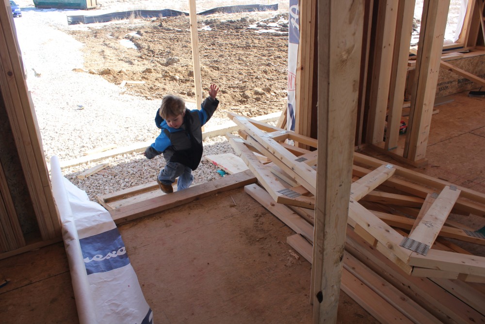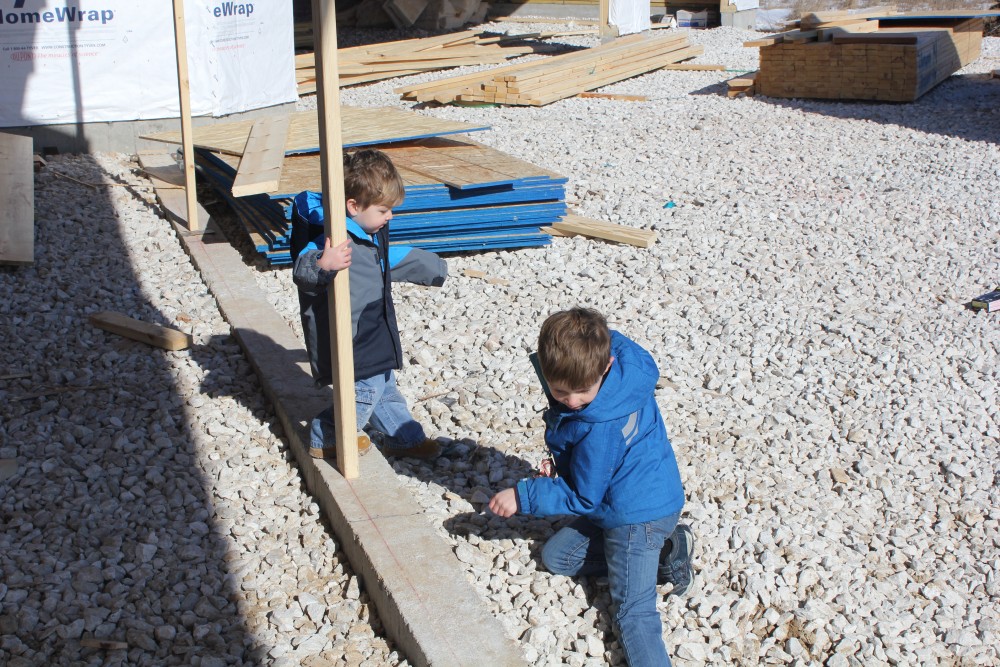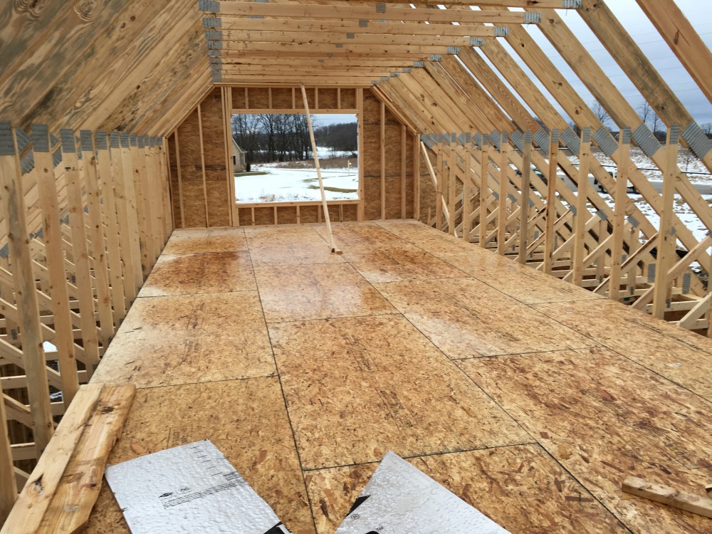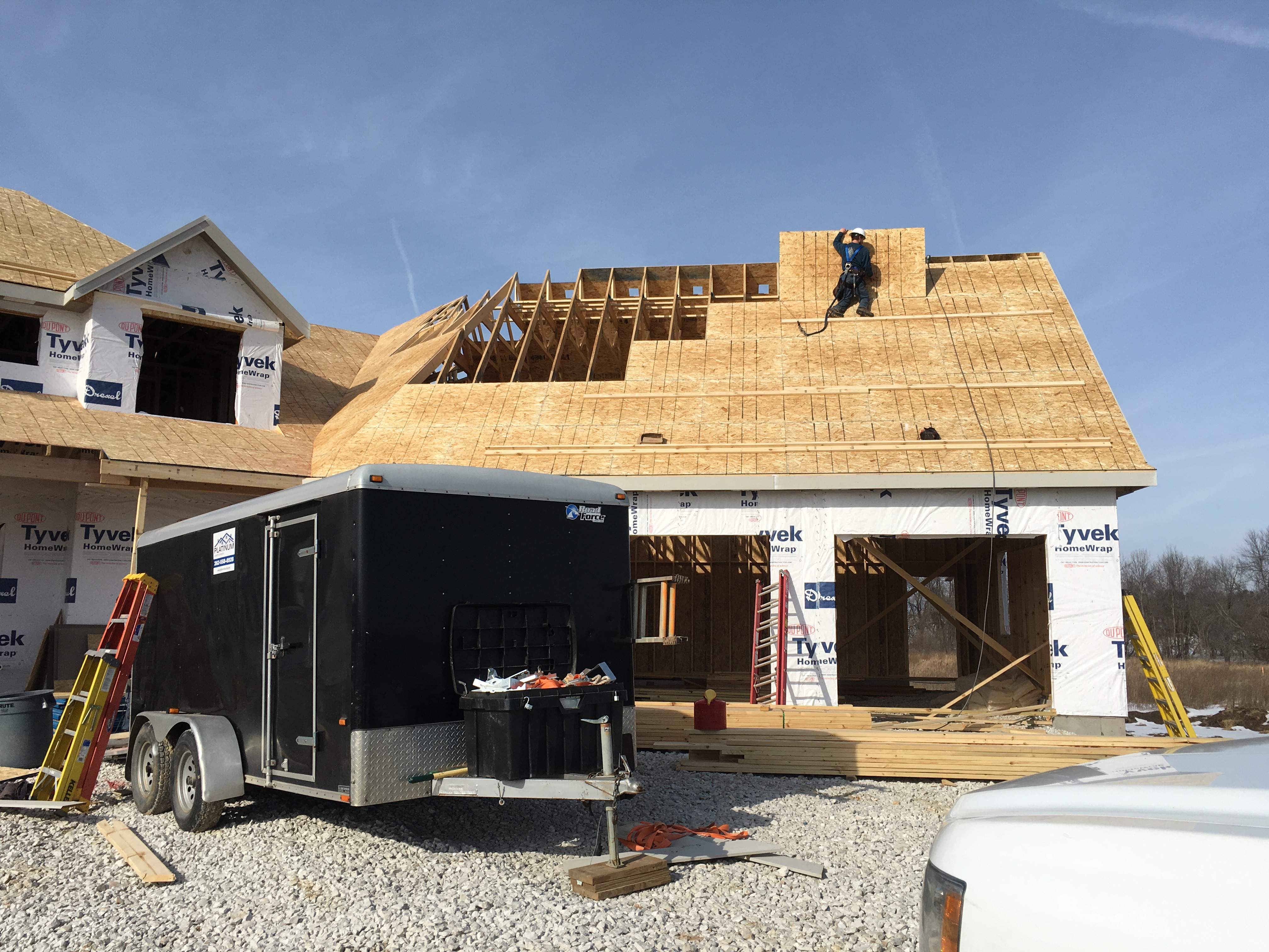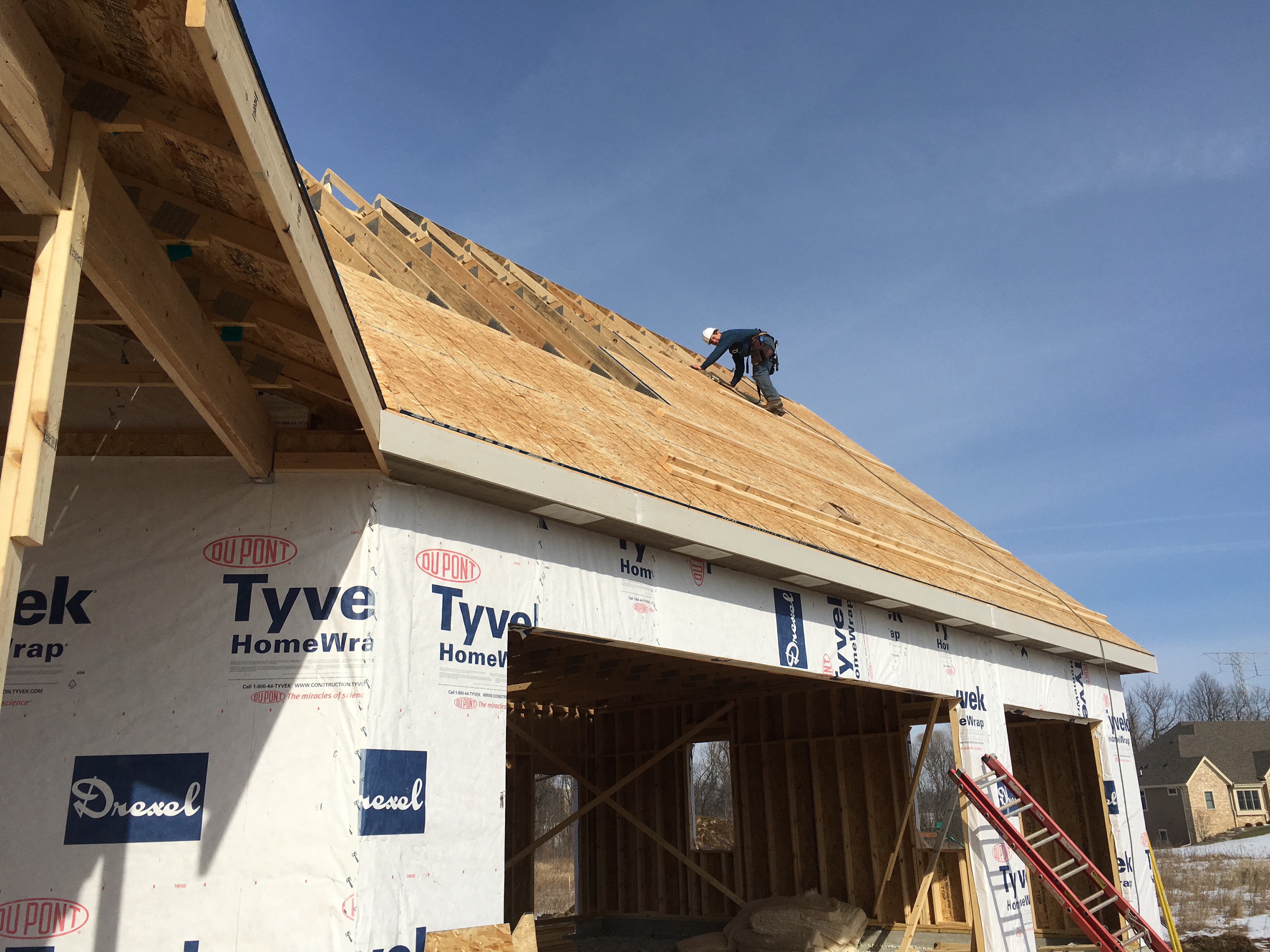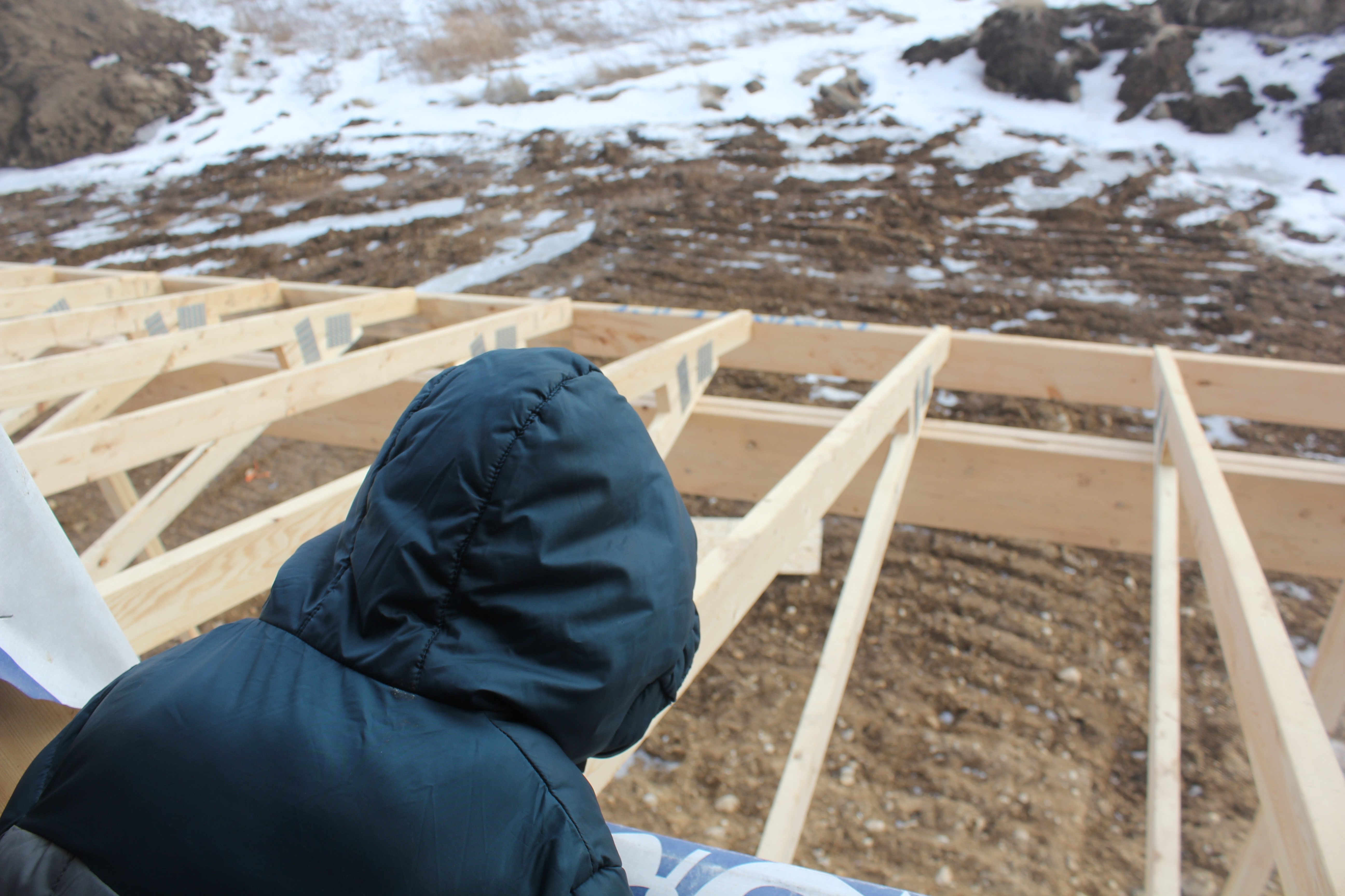 Roofing shirtless in February (but it was in the 30's when concrete was poured on April 28, sigh) |