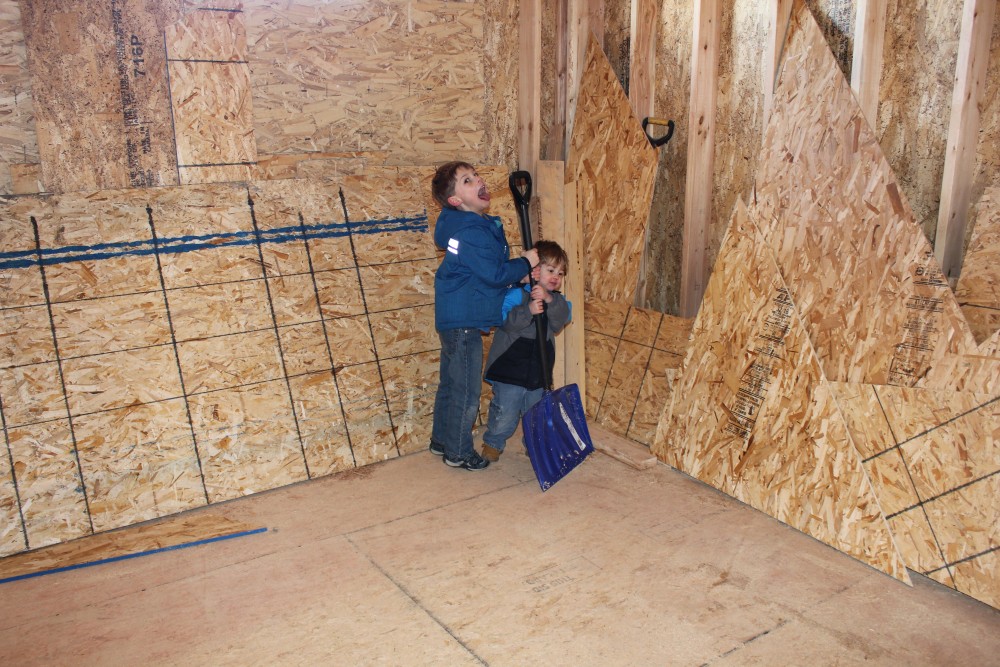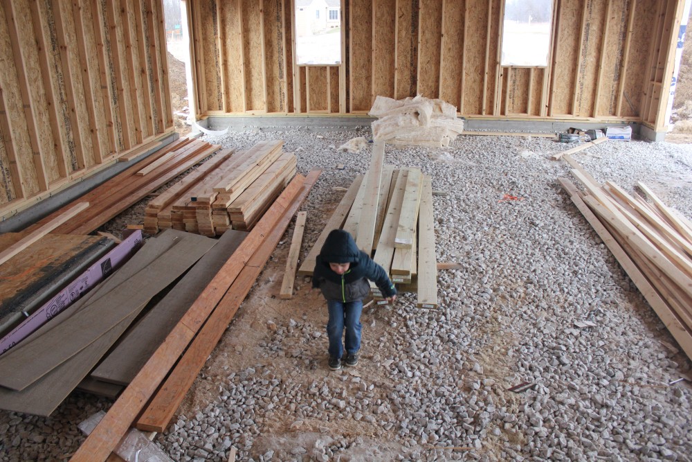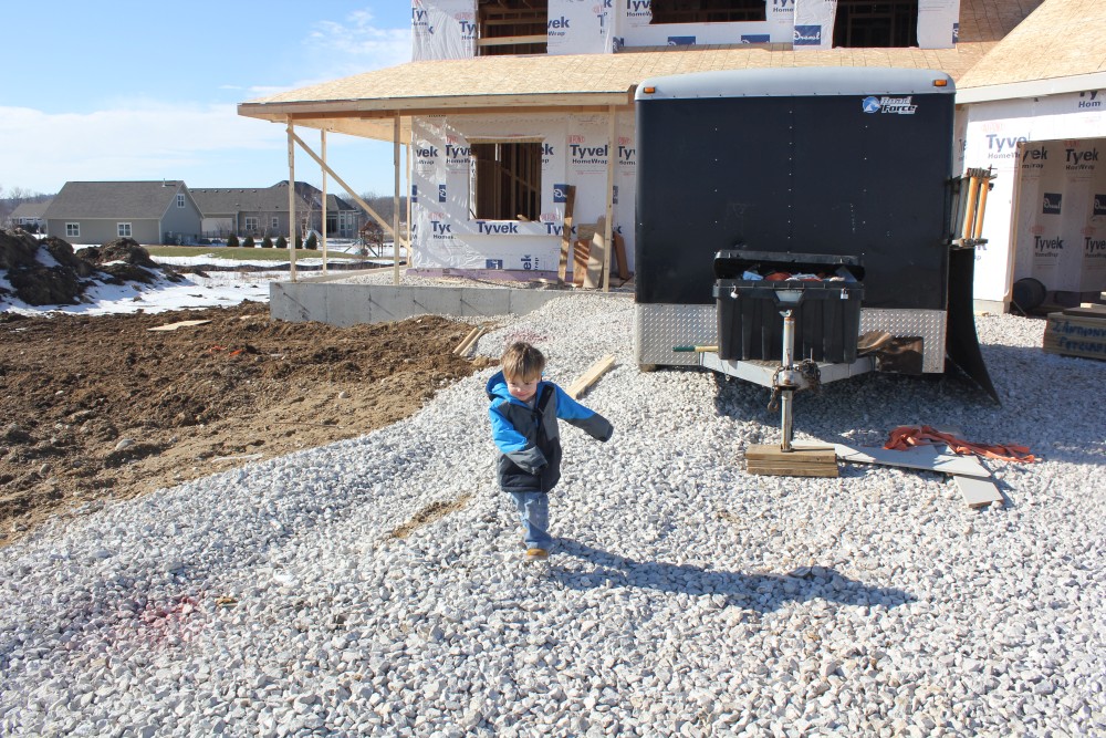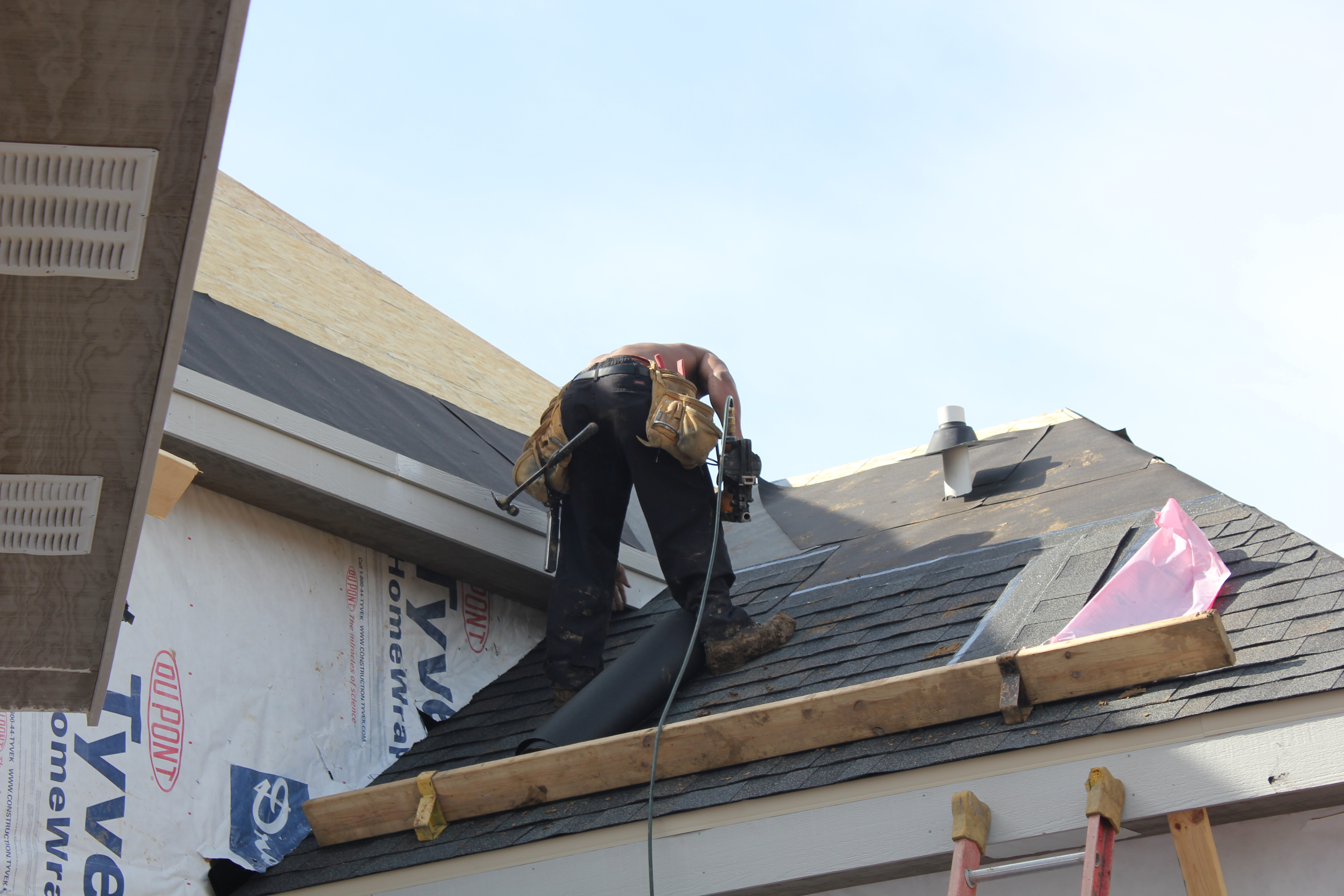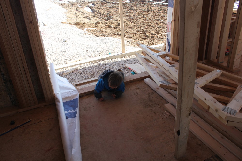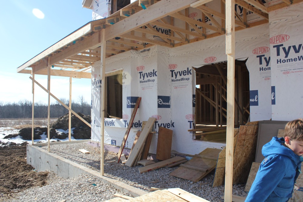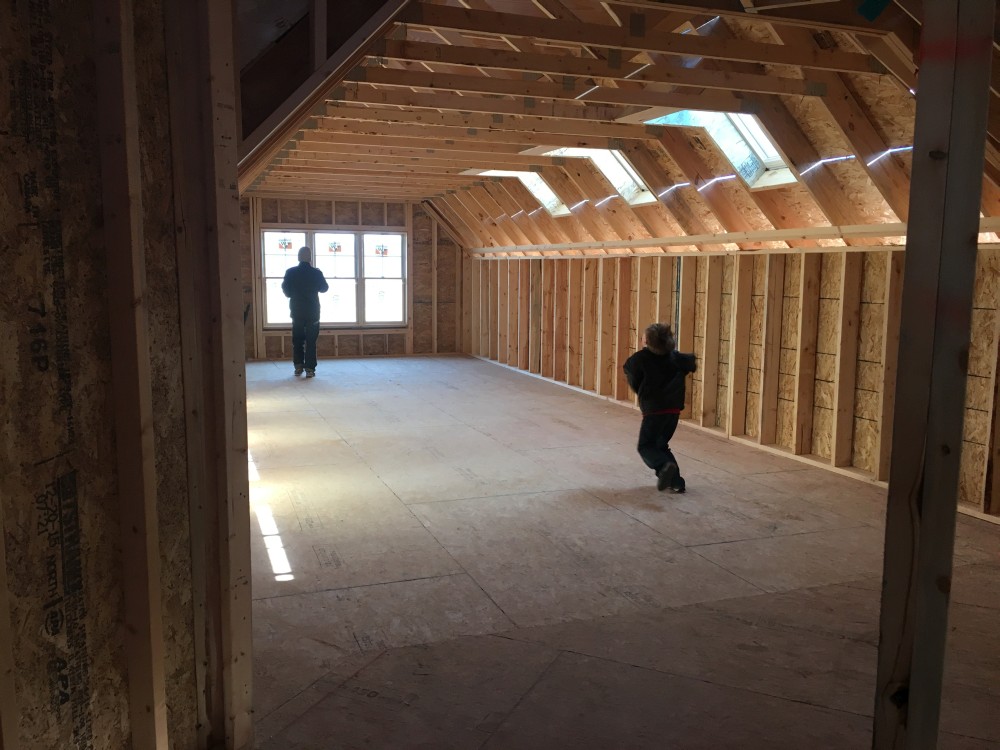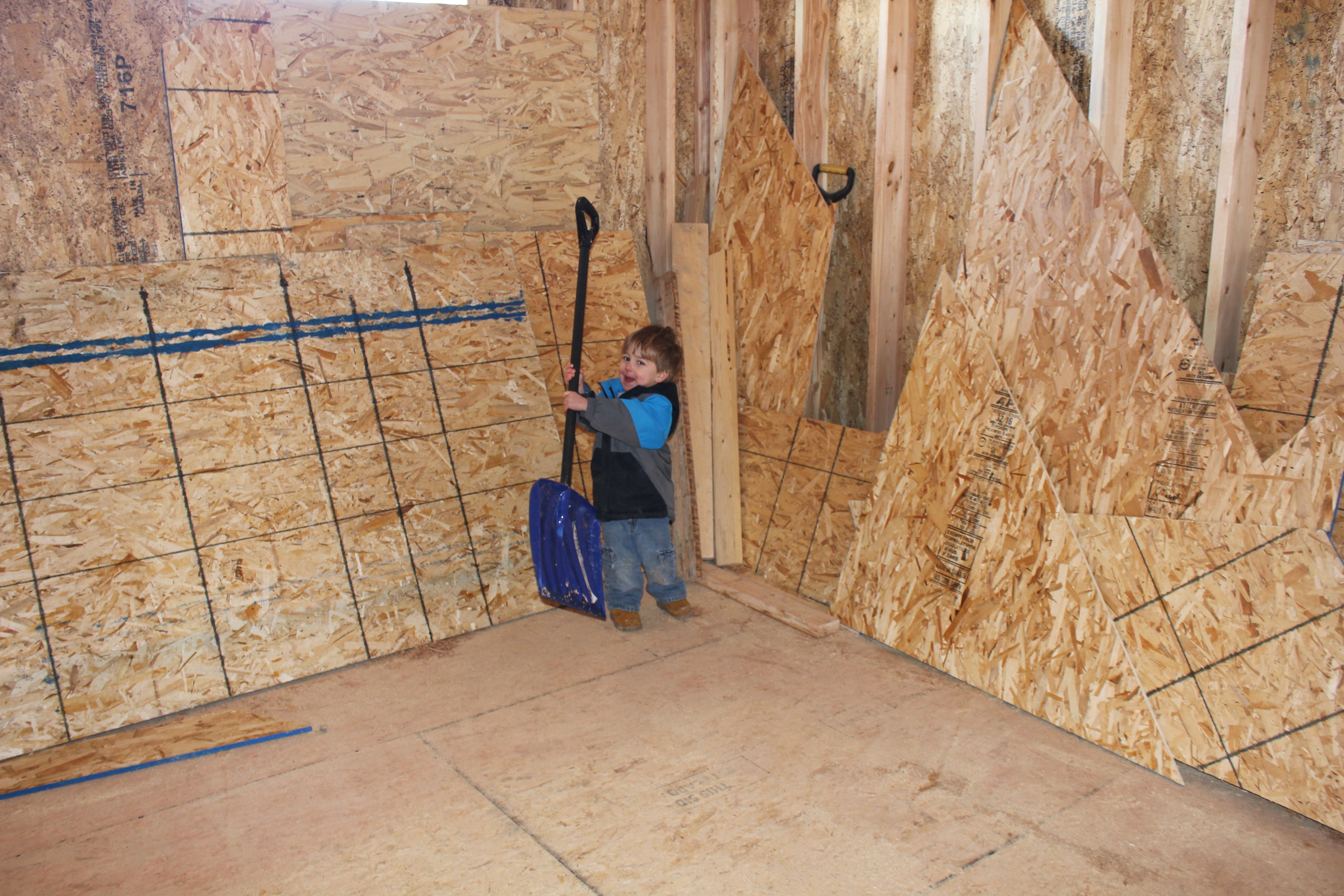 Roofing shirtless in February (but it was in the 30's when concrete was poured on April 28, sigh) |