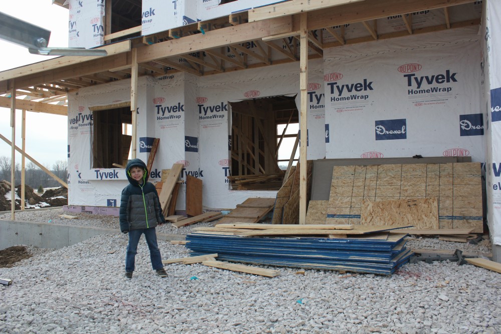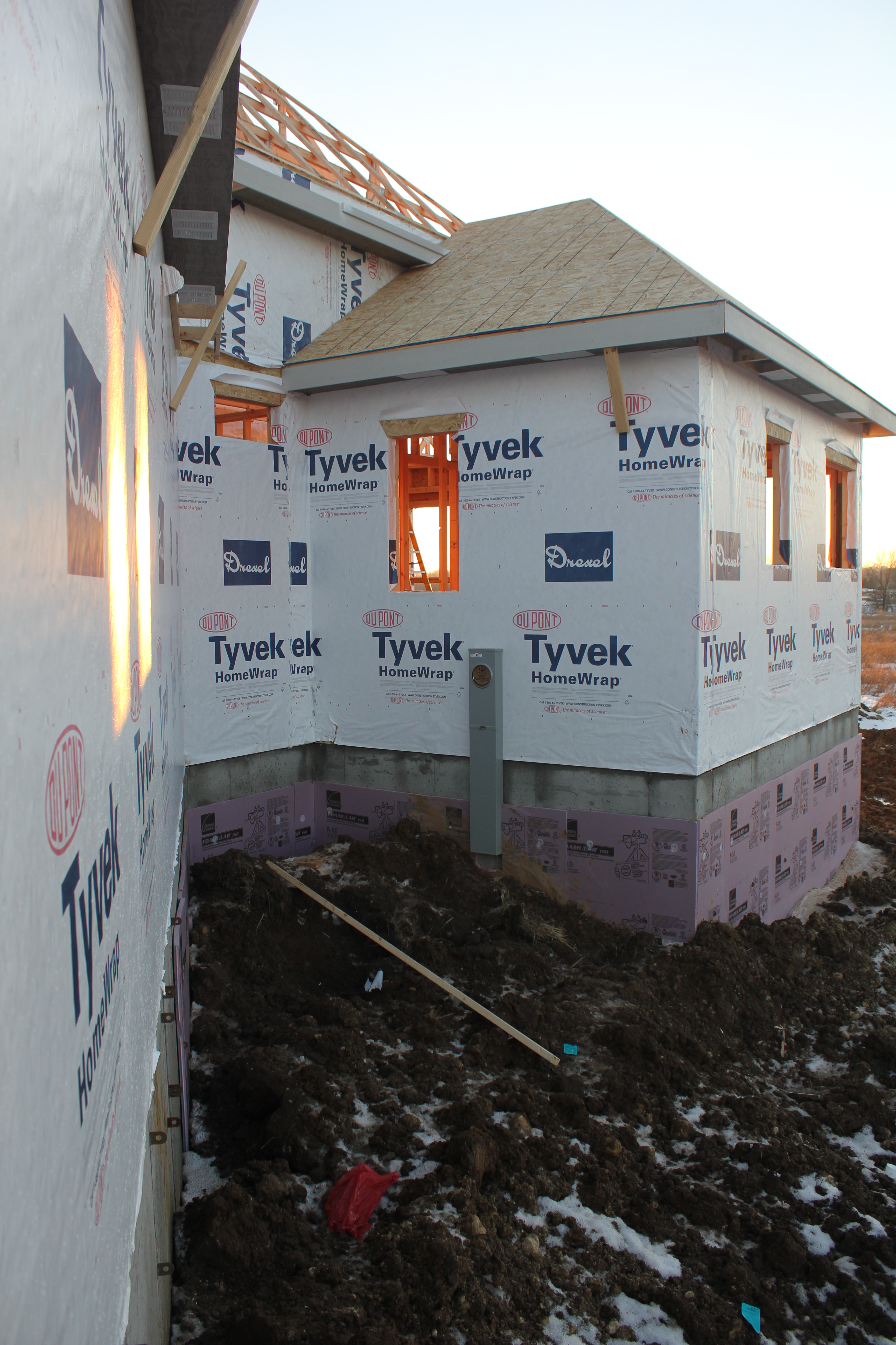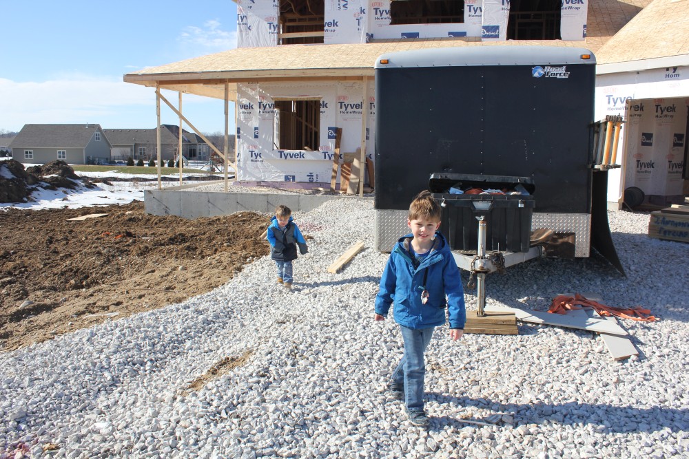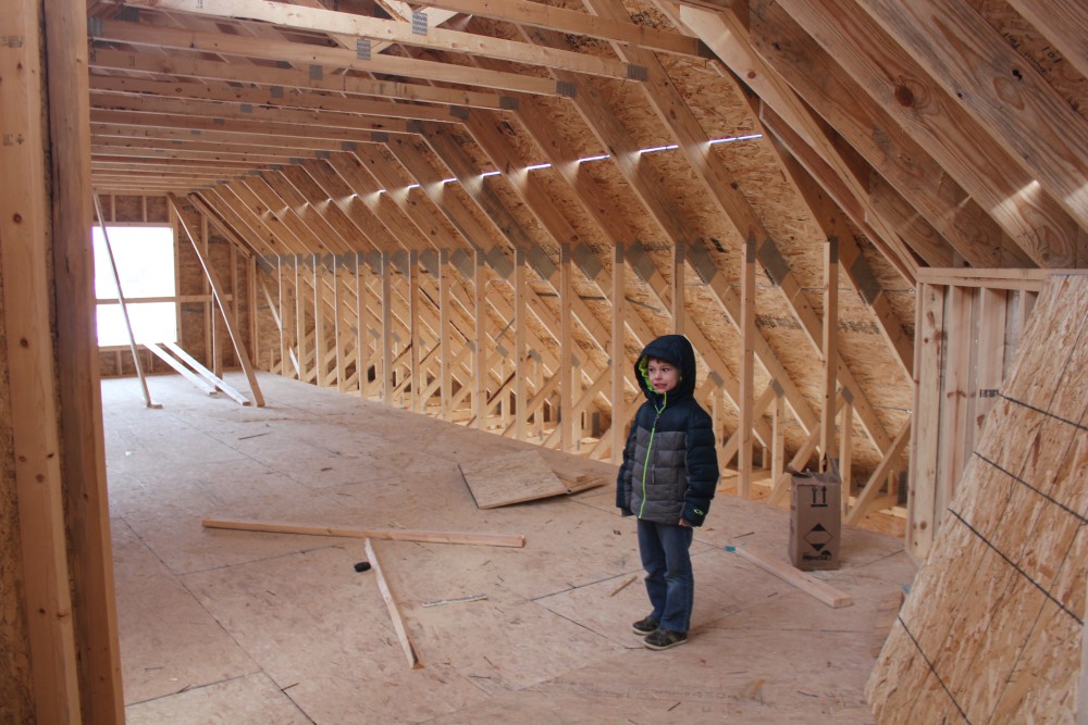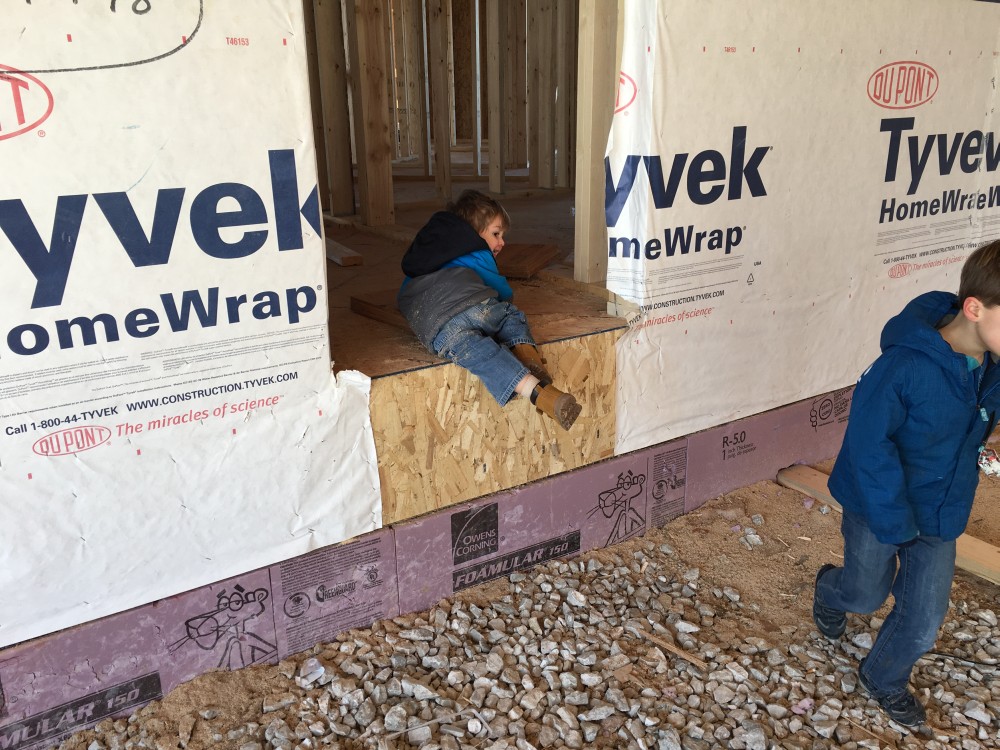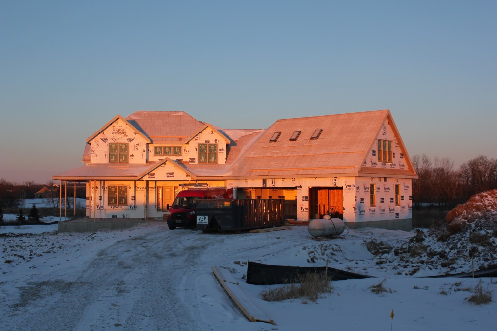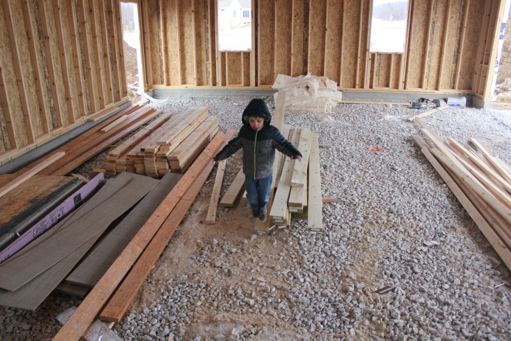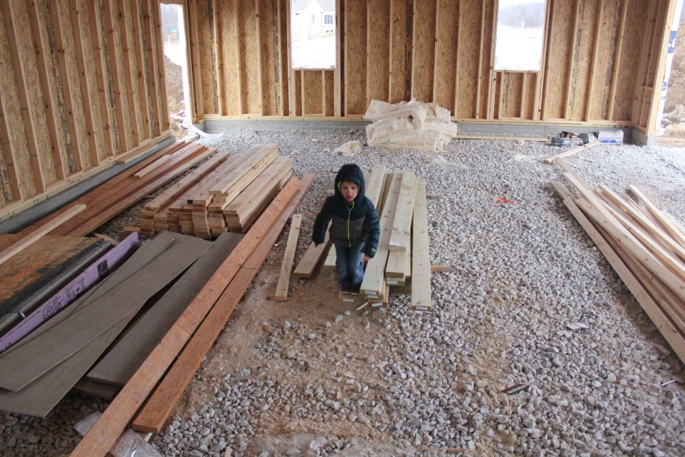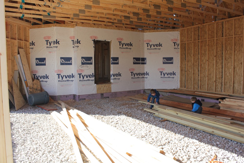 Roofing shirtless in February (but it was in the 30's when concrete was poured on April 28, sigh) |