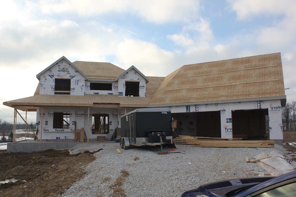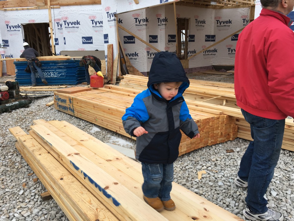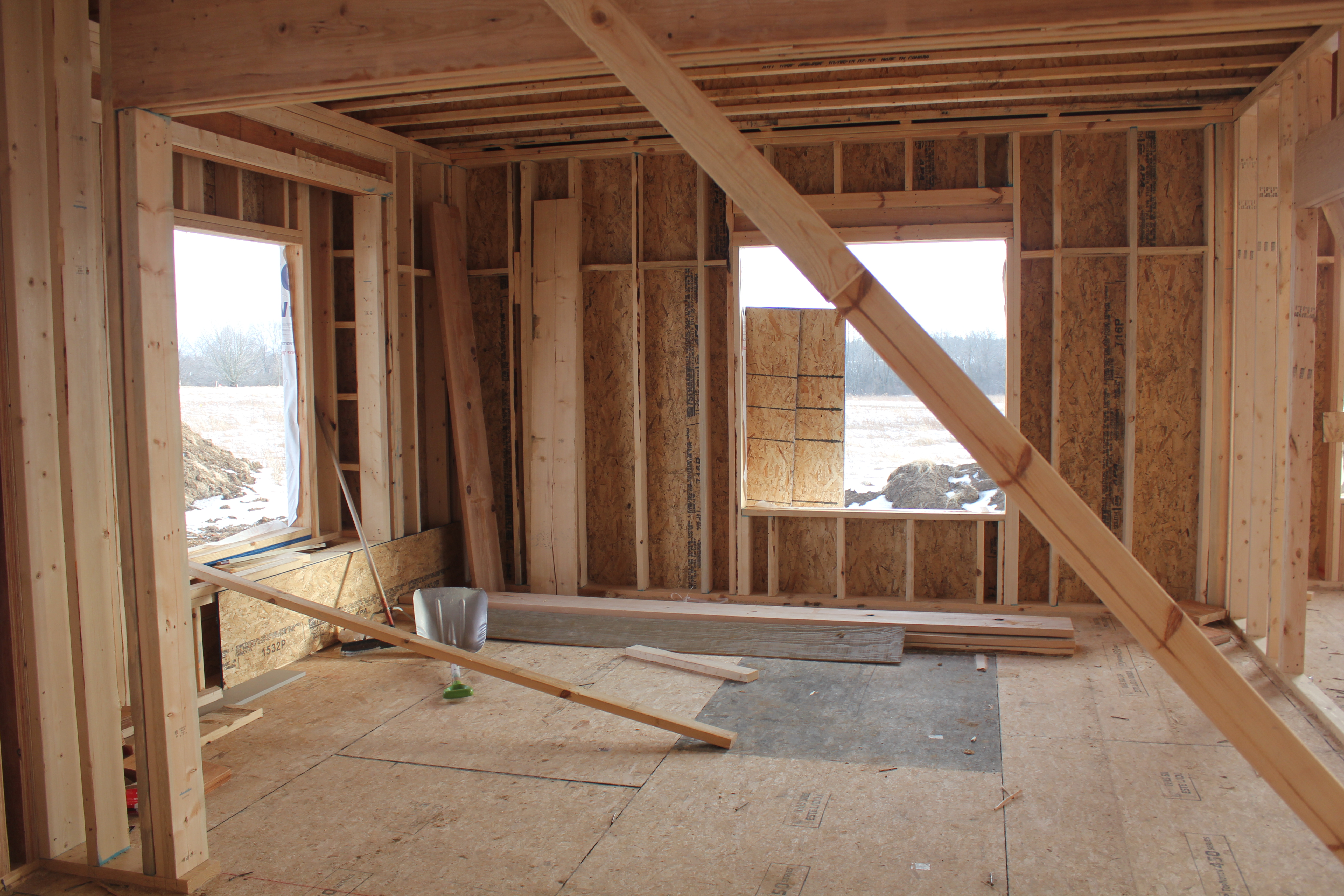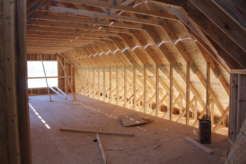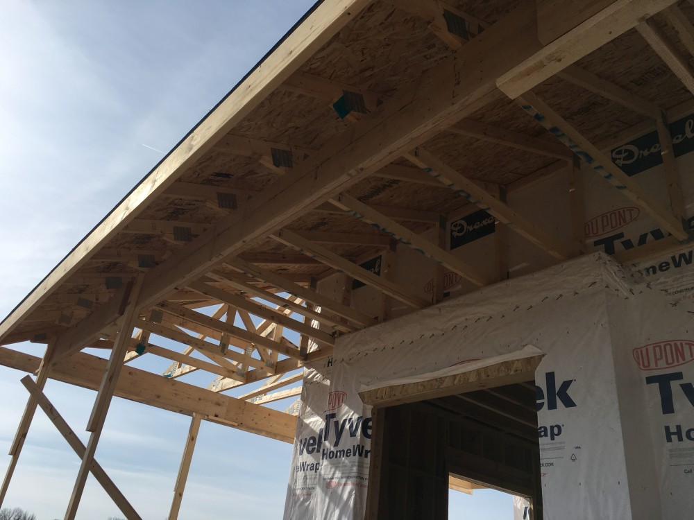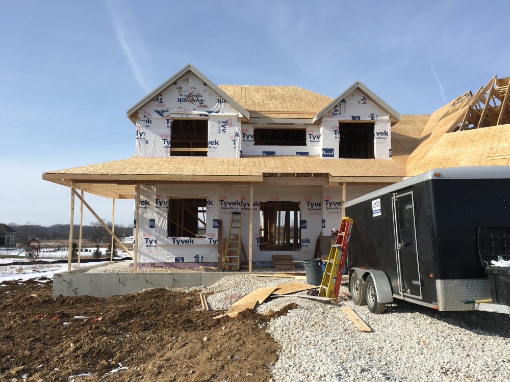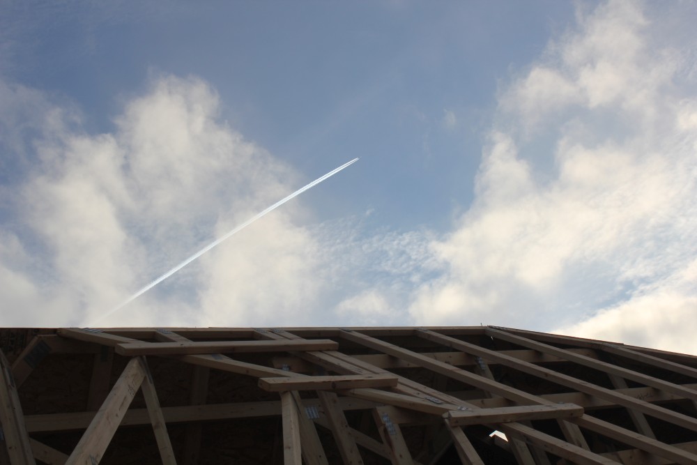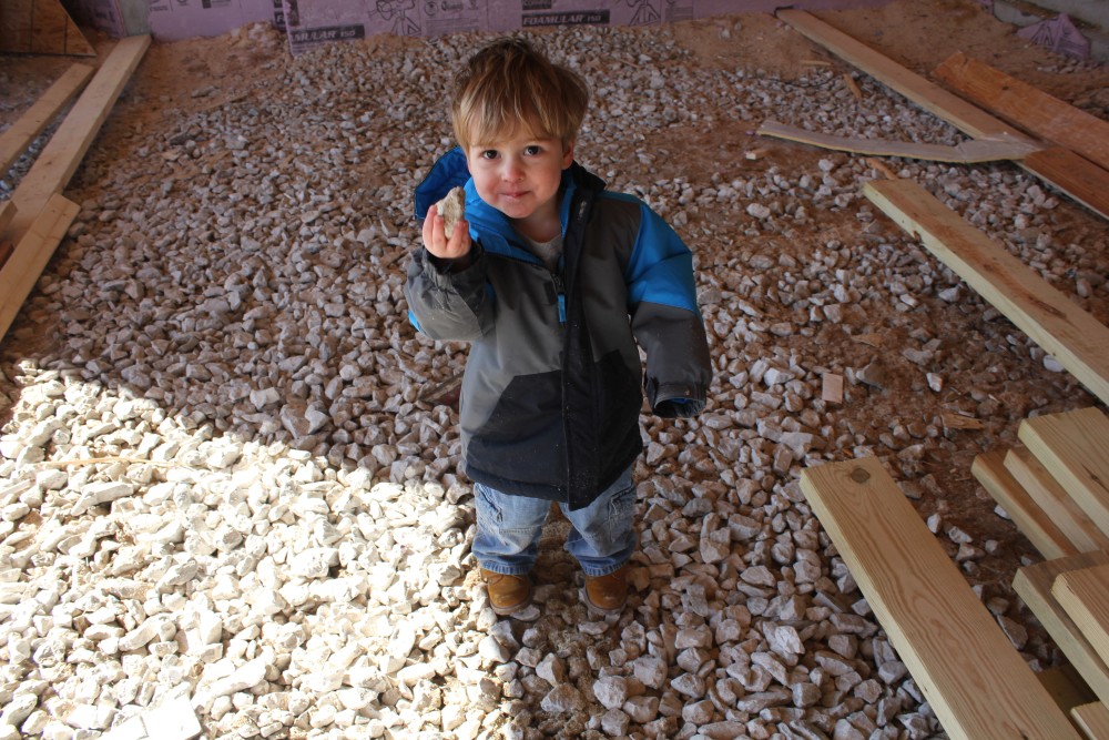 Roofing shirtless in February (but it was in the 30's when concrete was poured on April 28, sigh) |