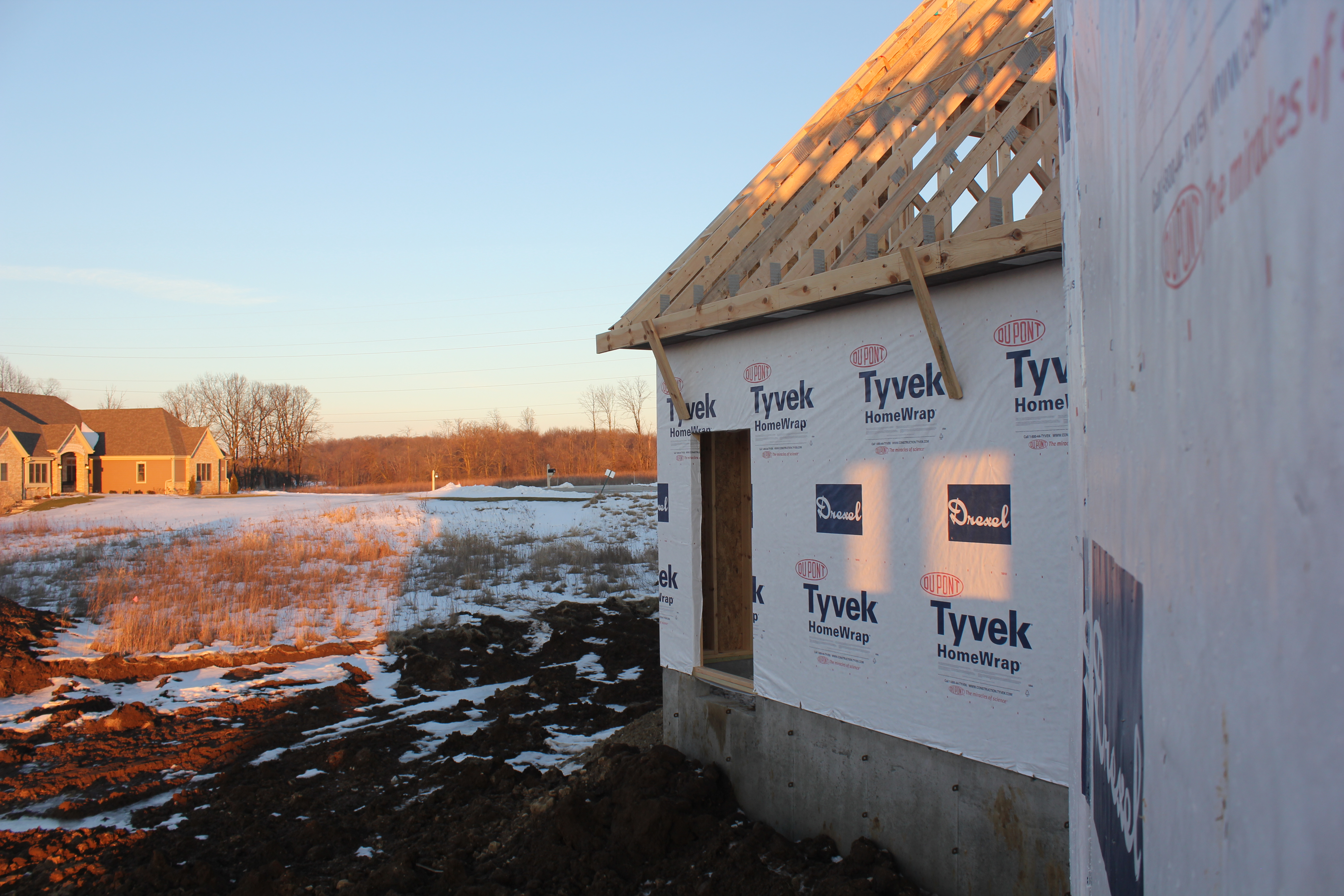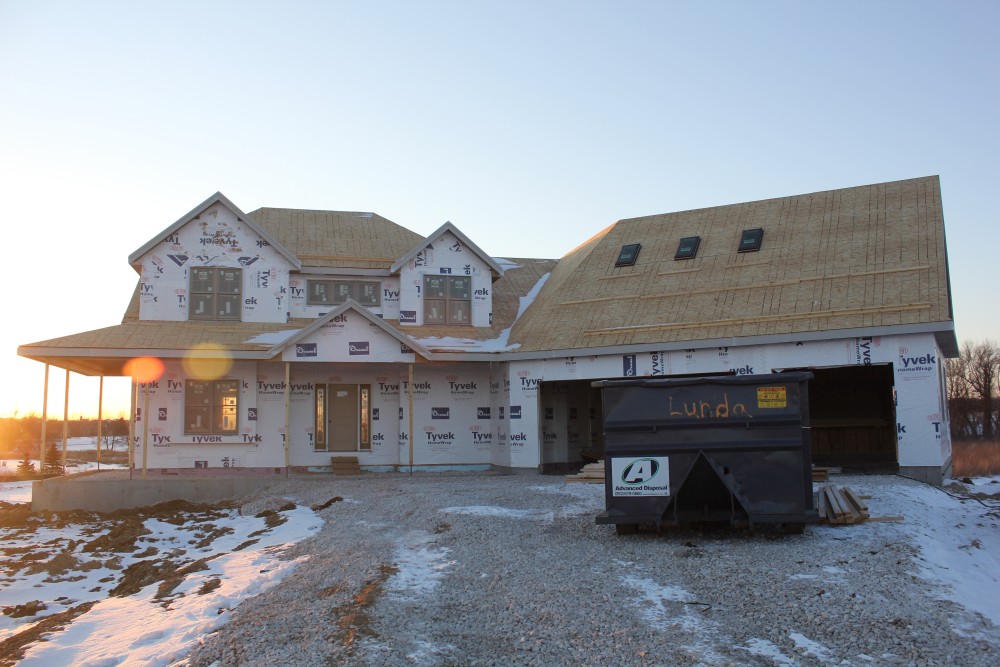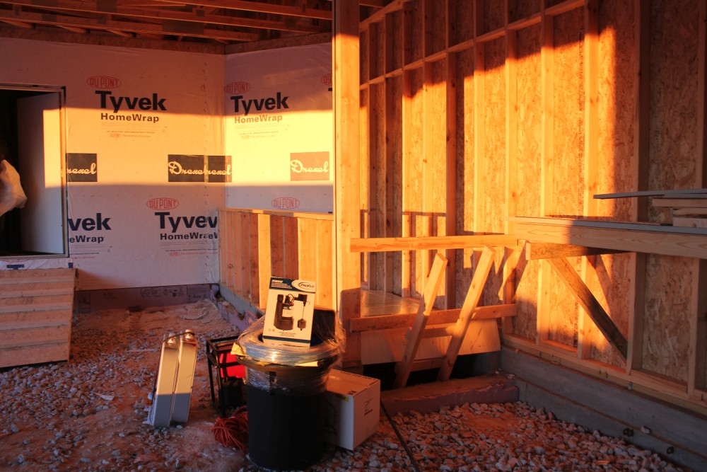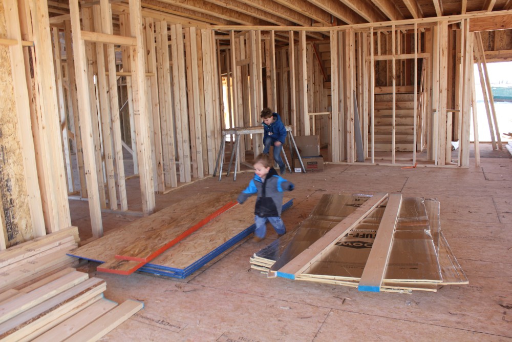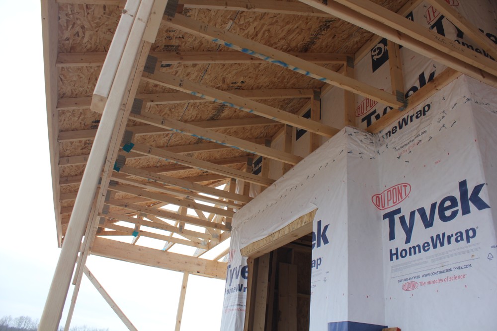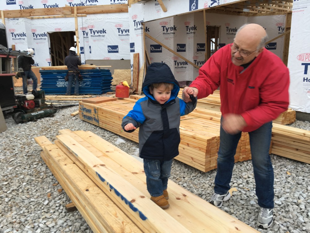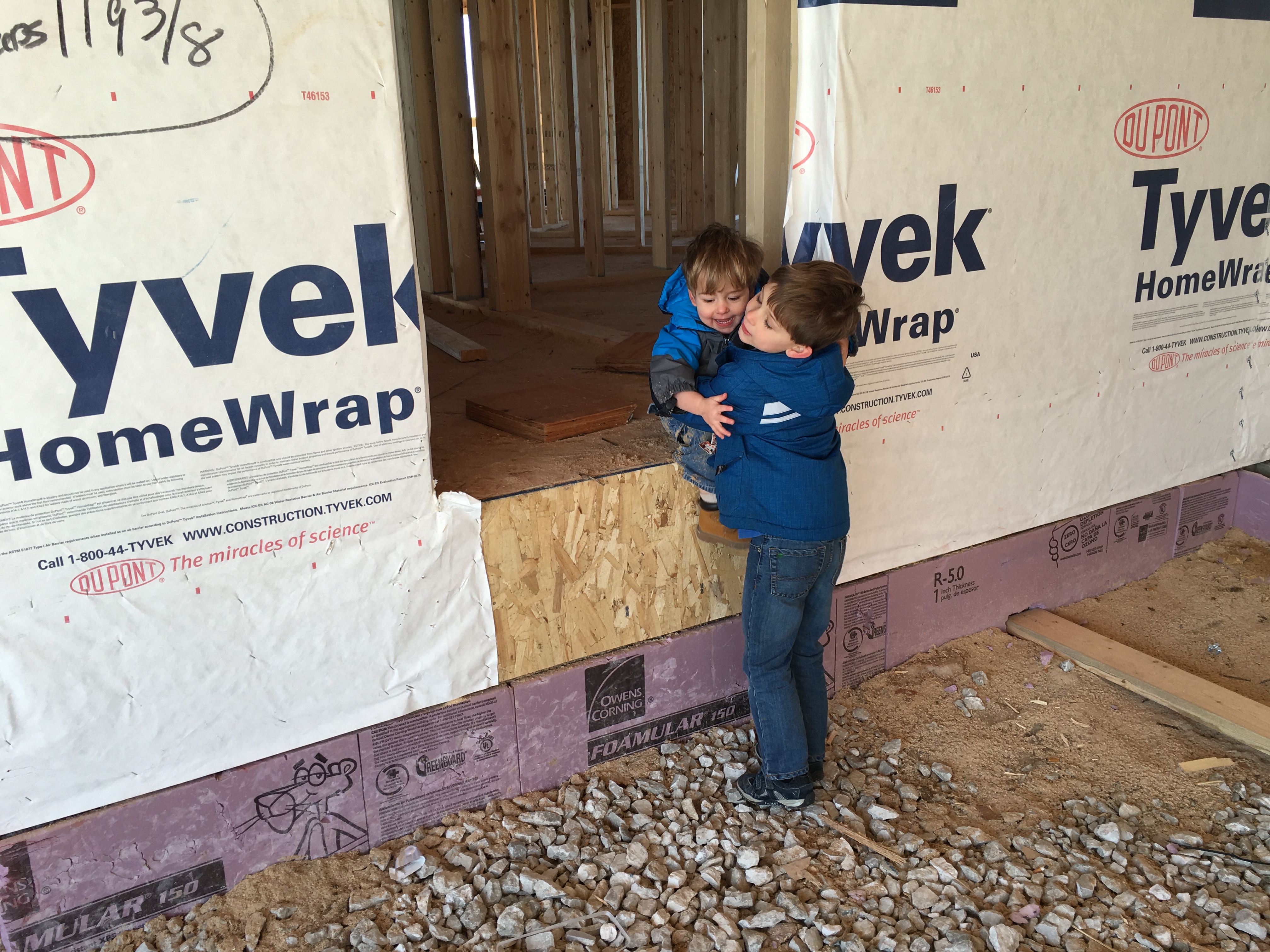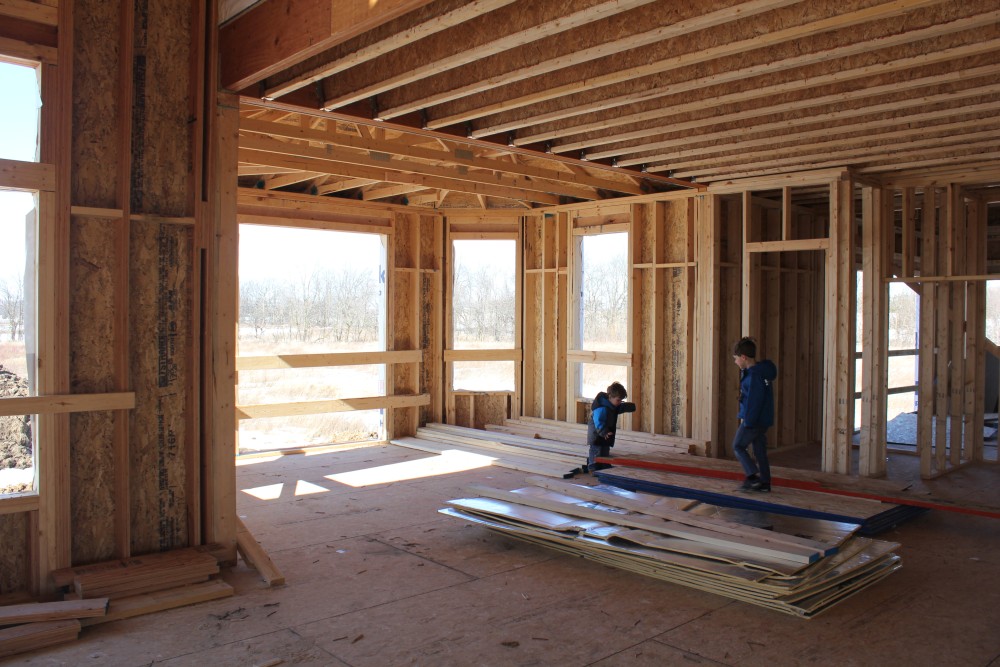 Roofing shirtless in February (but it was in the 30's when concrete was poured on April 28, sigh) |