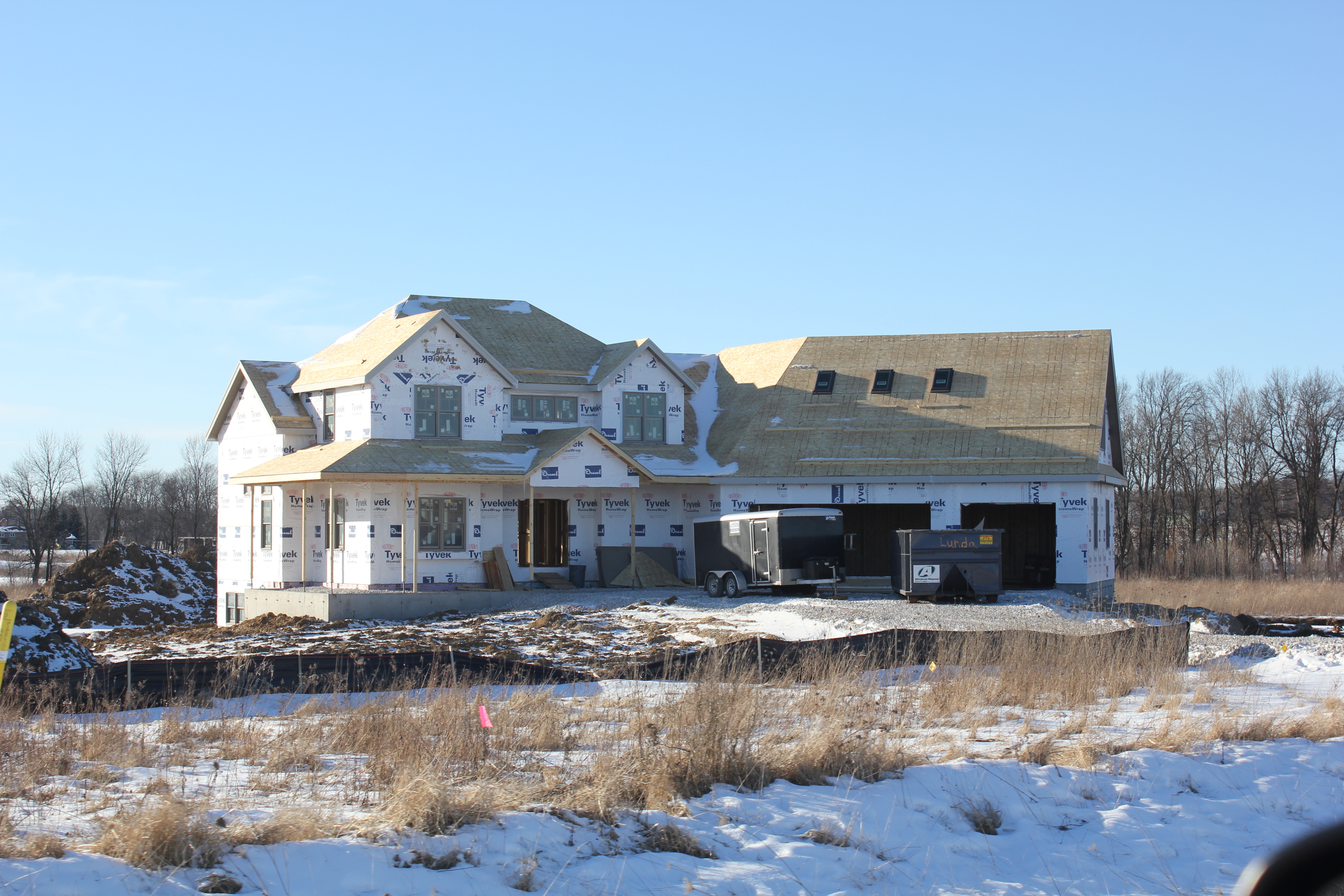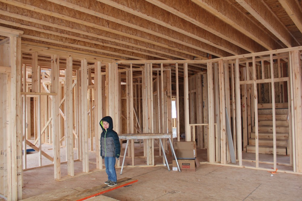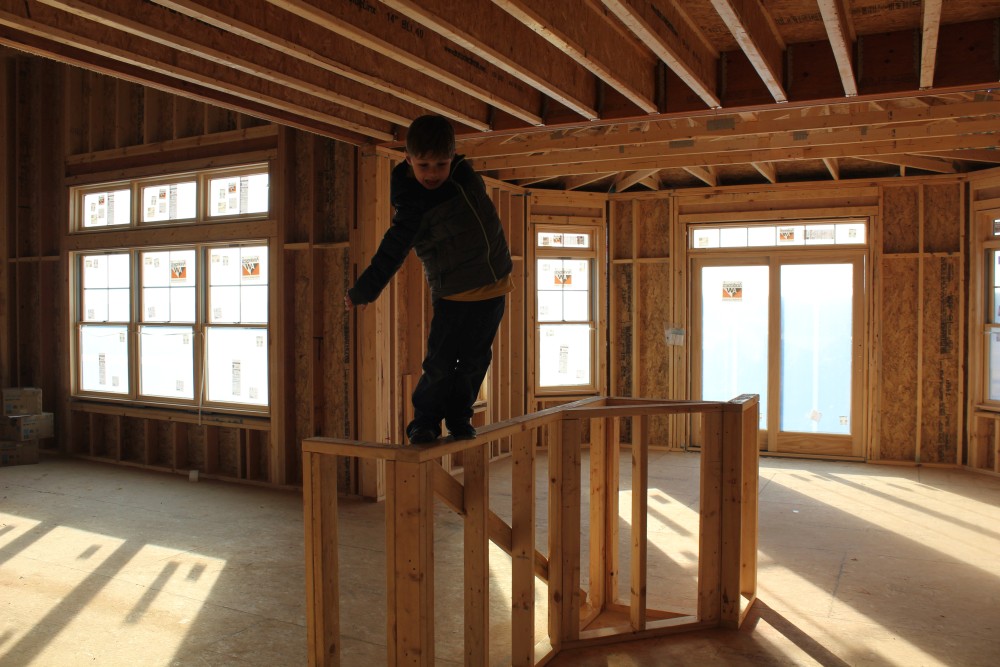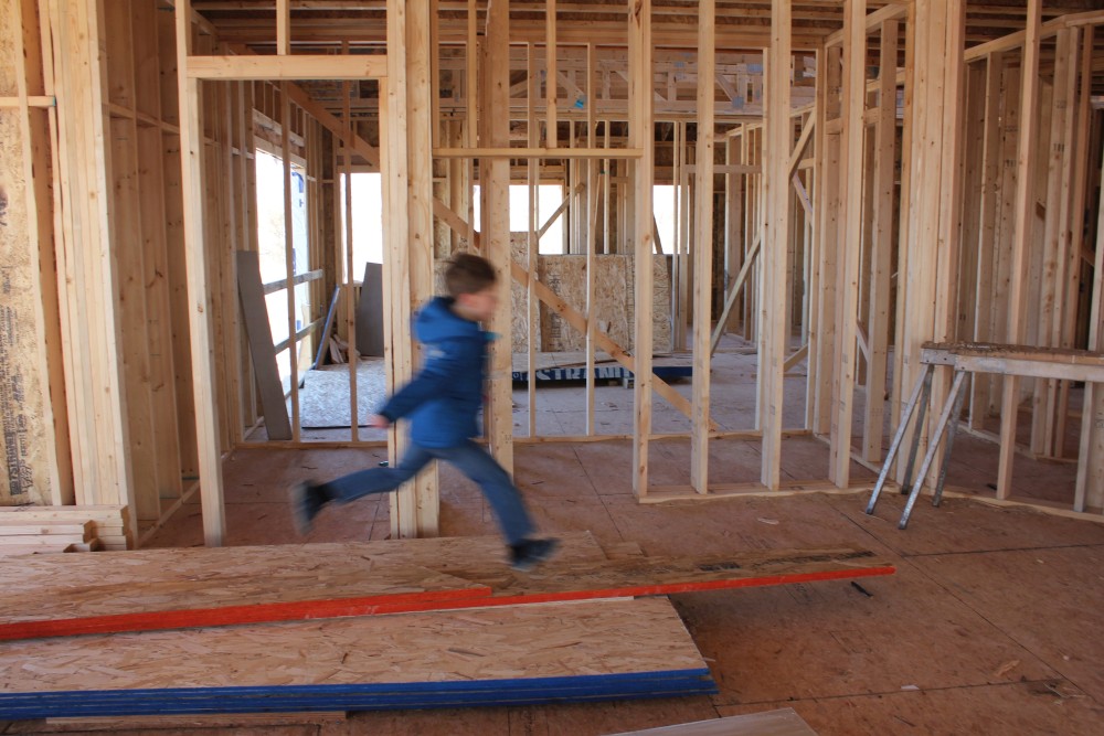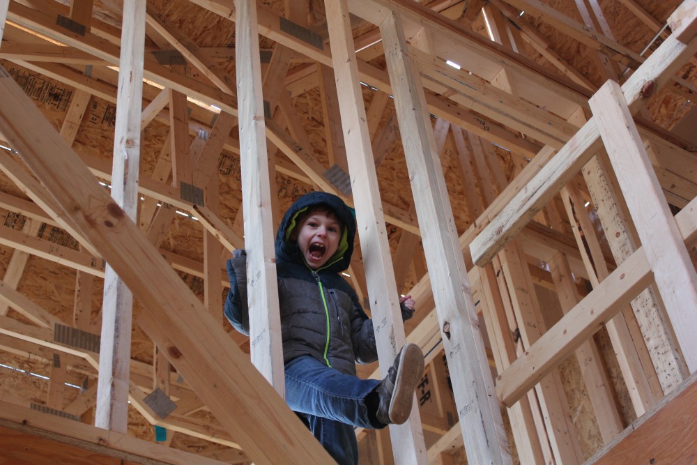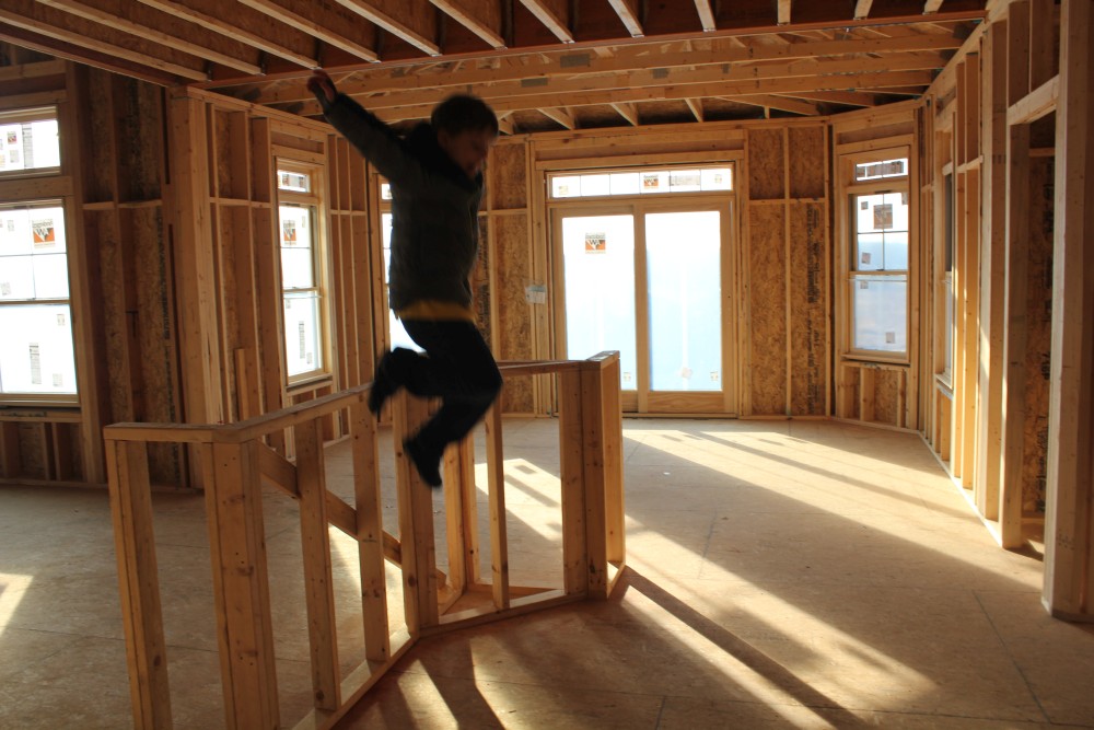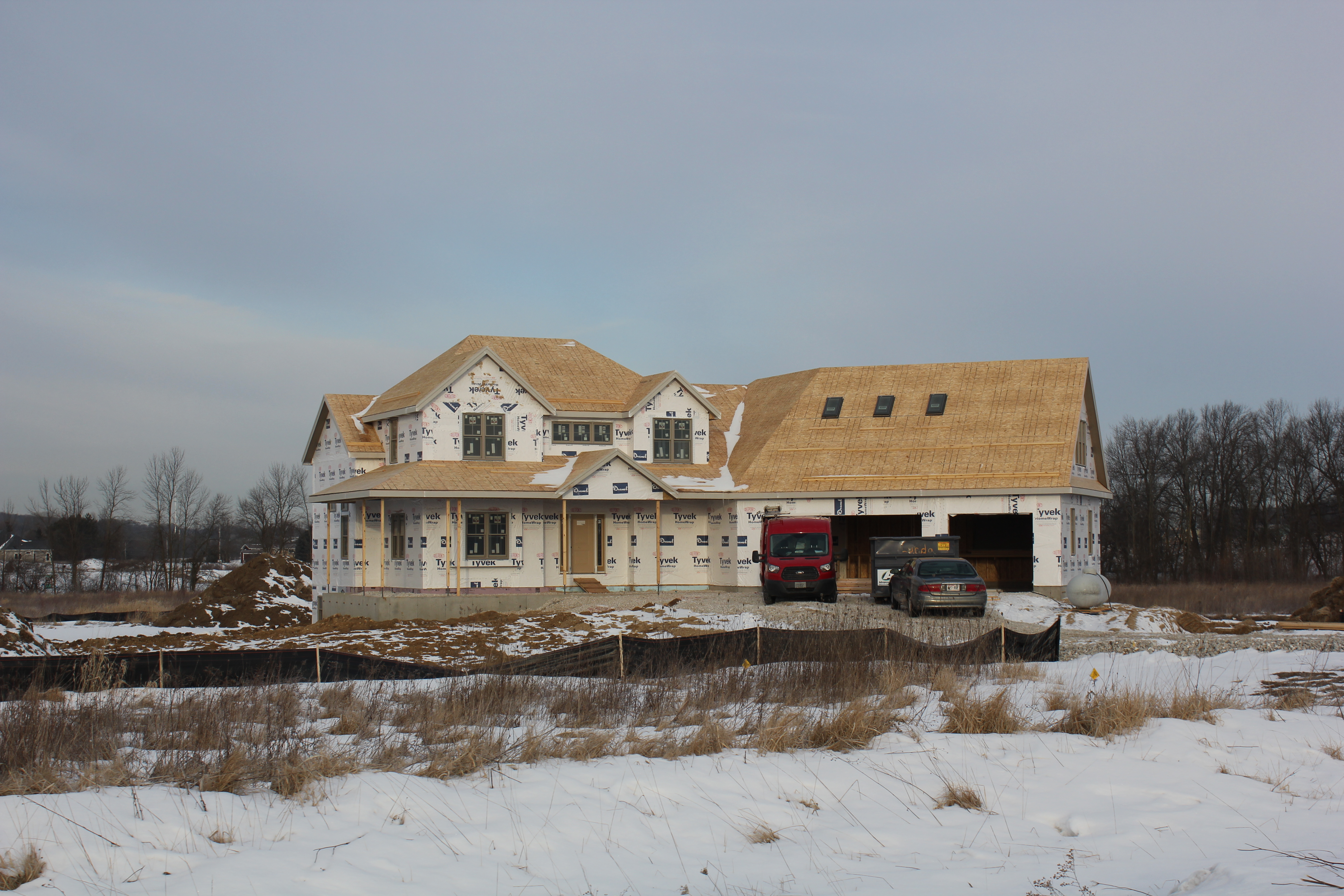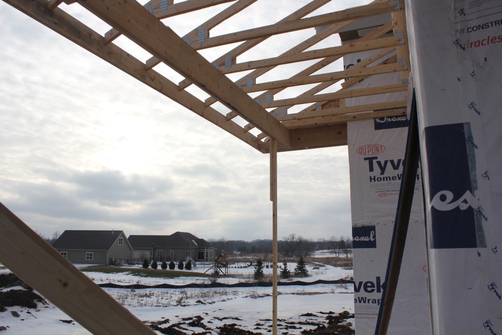 Roofing shirtless in February (but it was in the 30's when concrete was poured on April 28, sigh) |