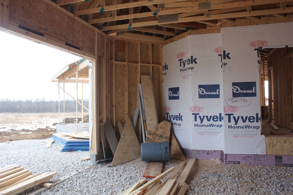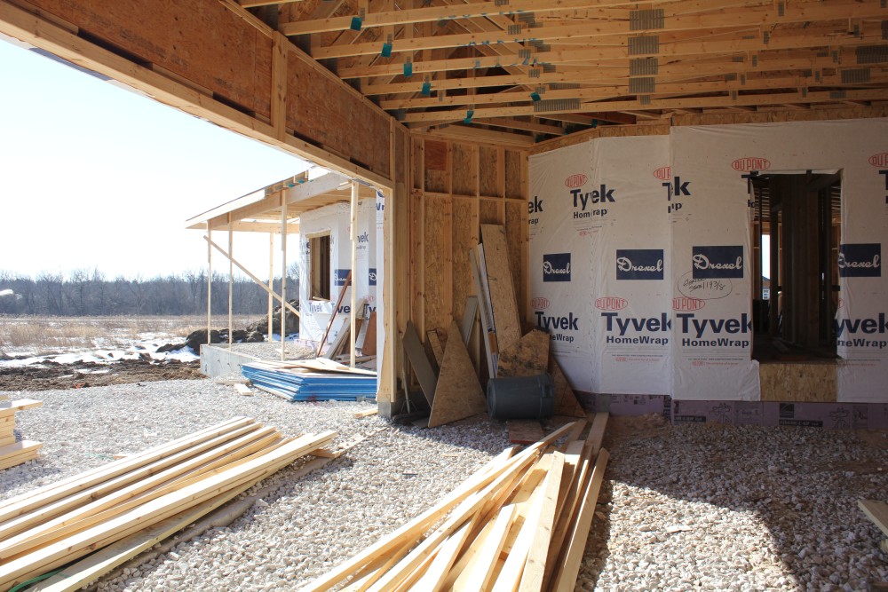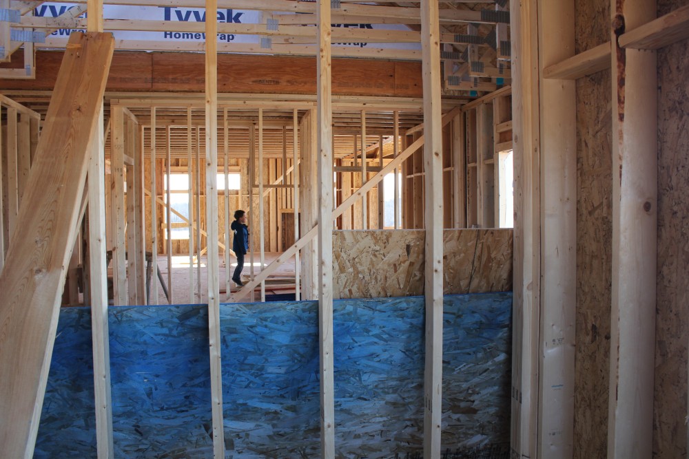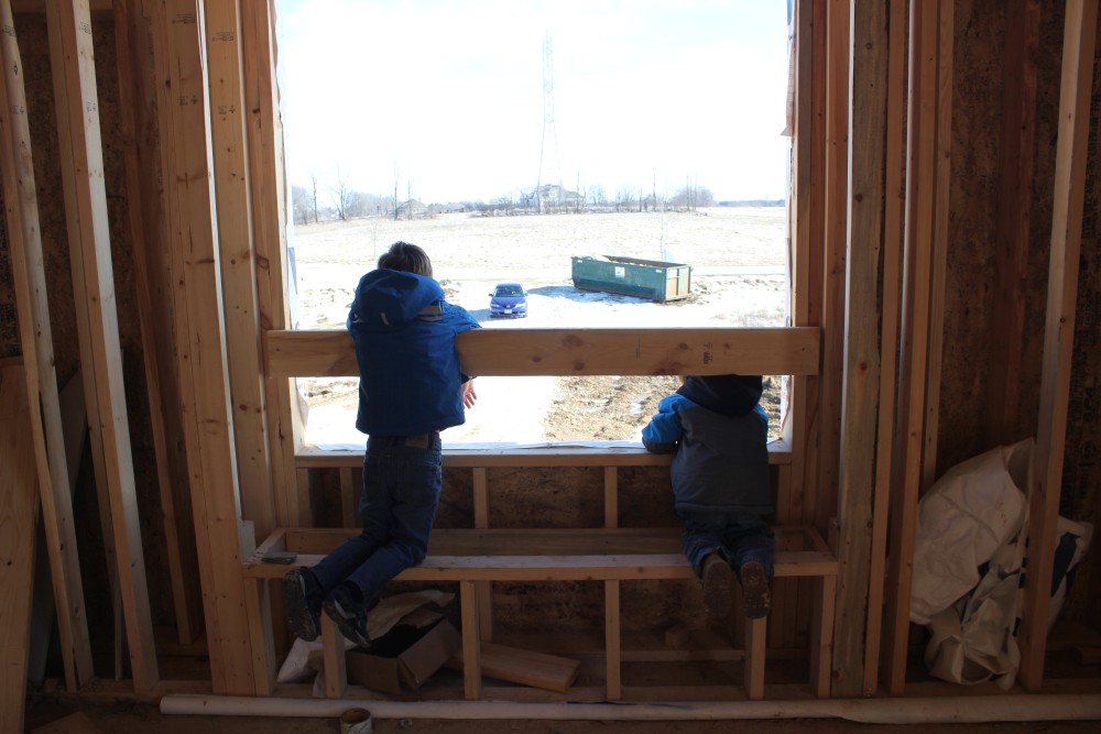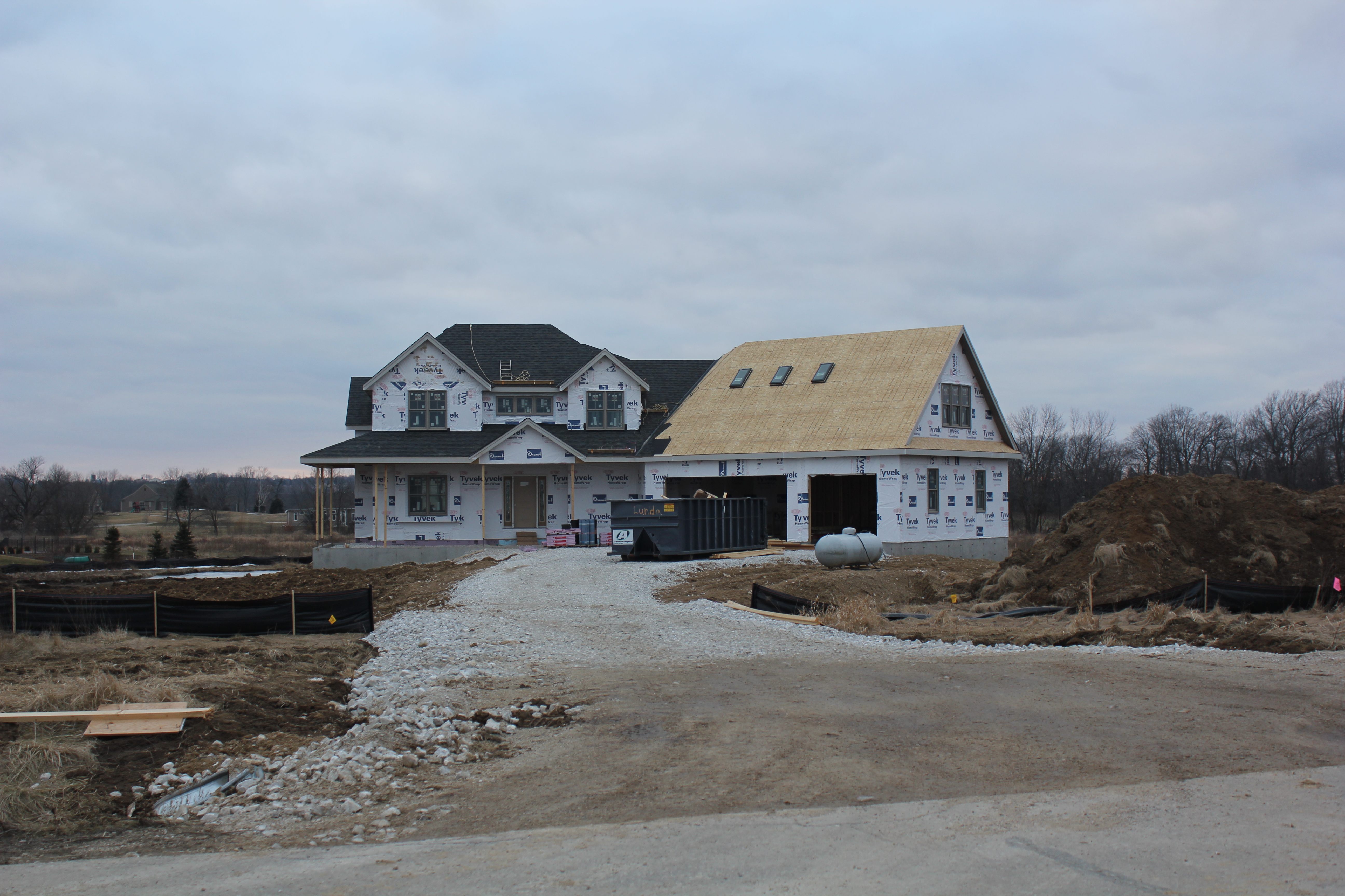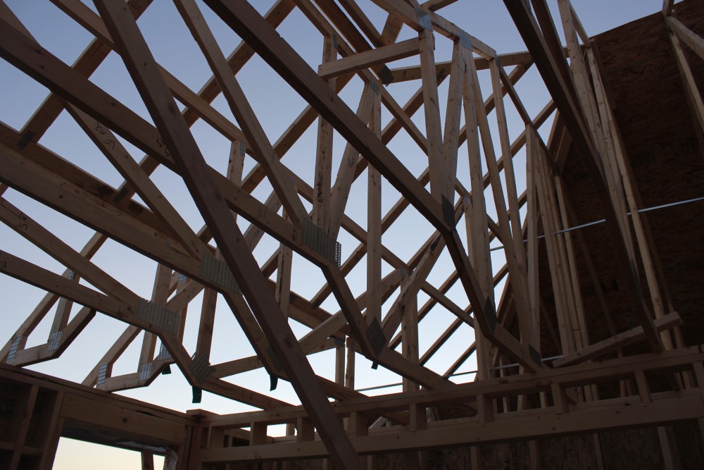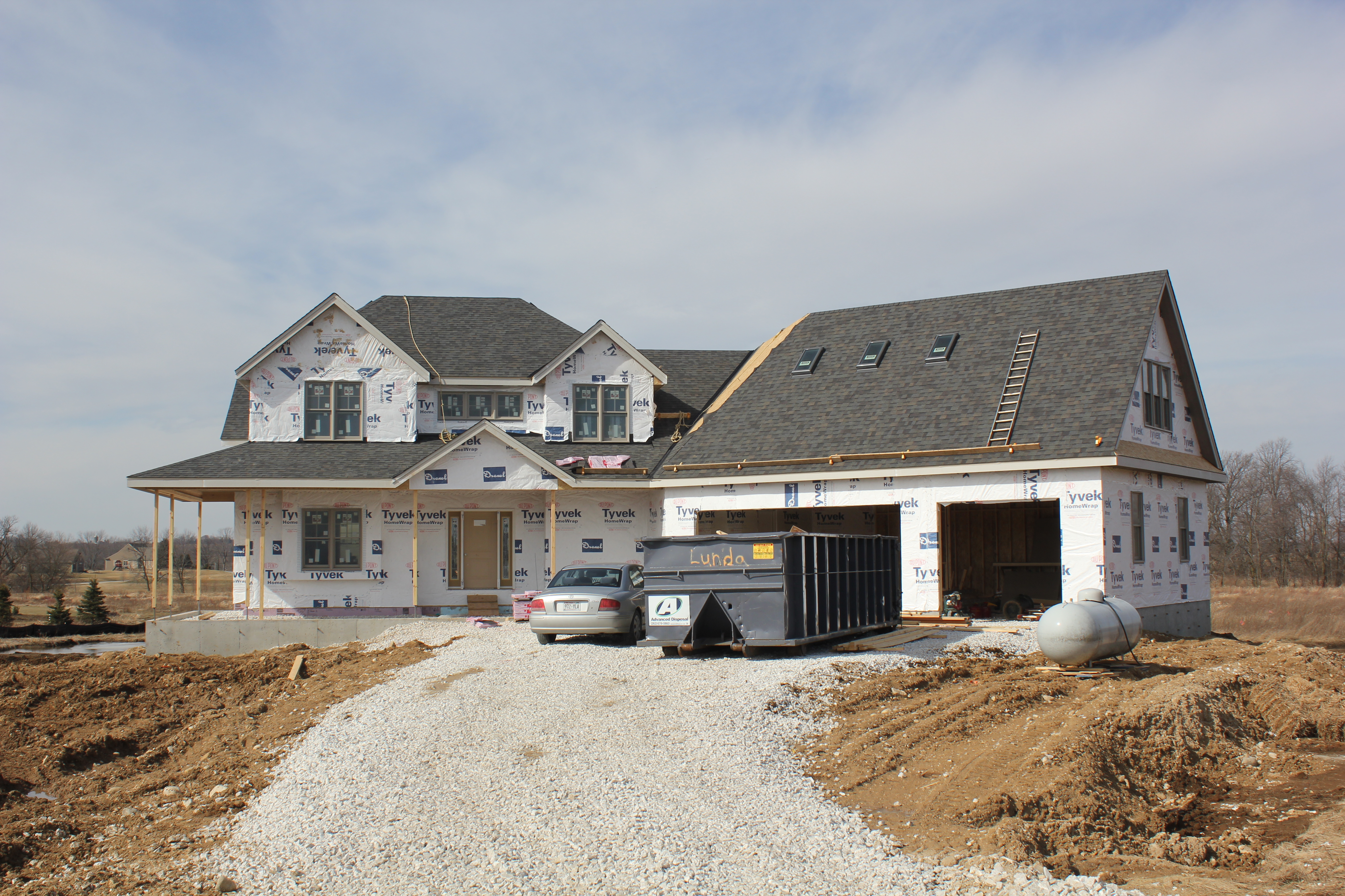 Roofing shirtless in February (but it was in the 30's when concrete was poured on April 28, sigh) |