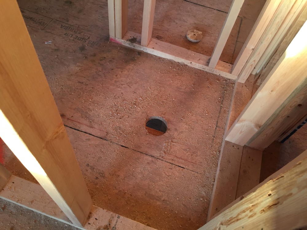 Well this is a problem. You can't drill through that. Gonna have to redesign the bathroom... |