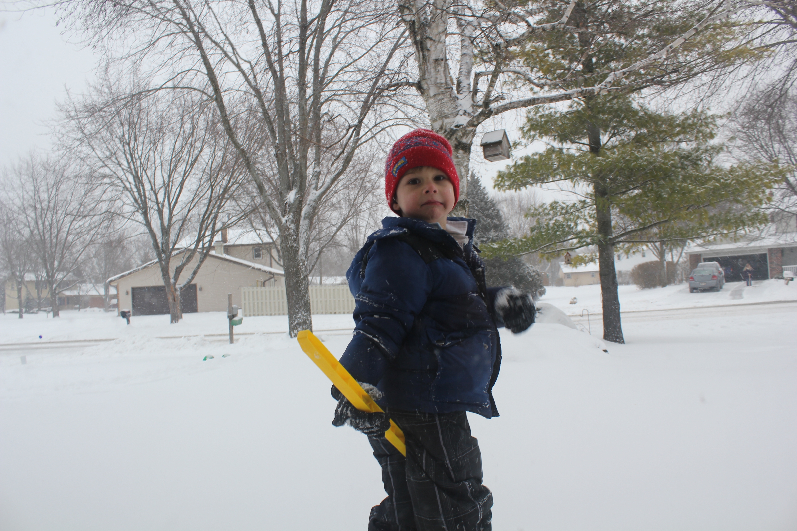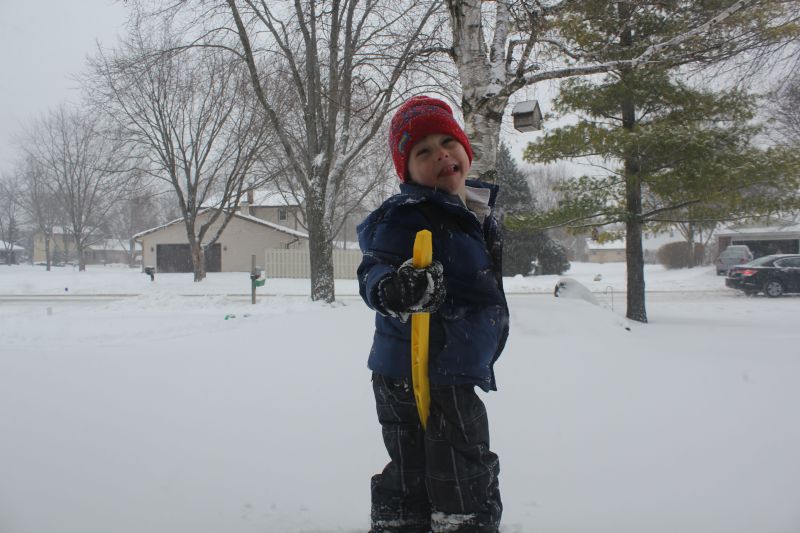 It's not even Christmas yet, and the snow piles are already taller than Elliot... |