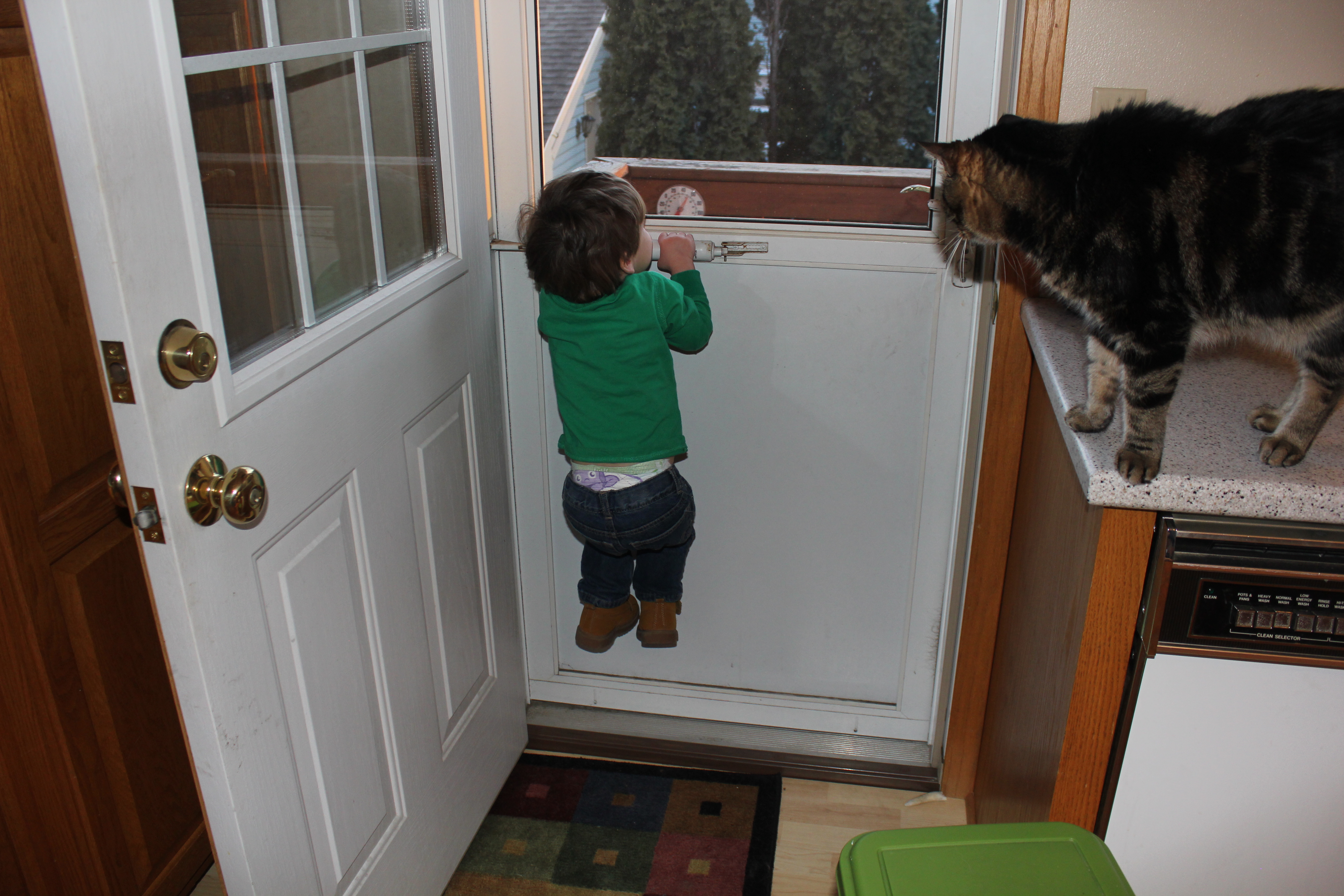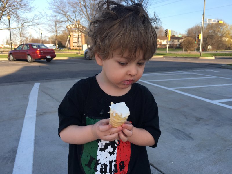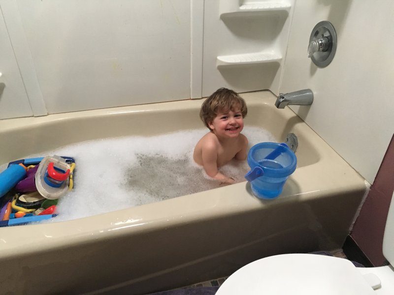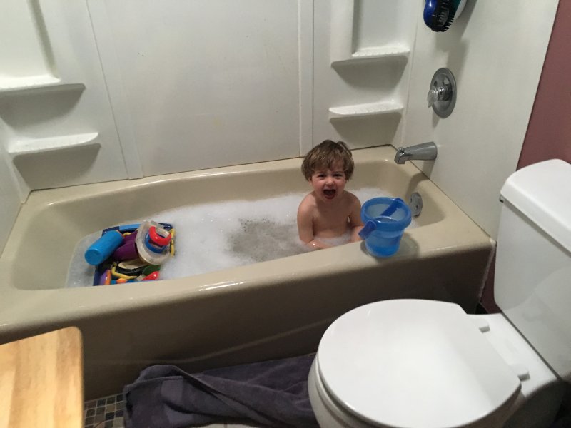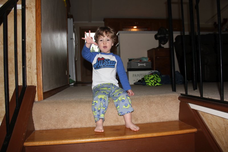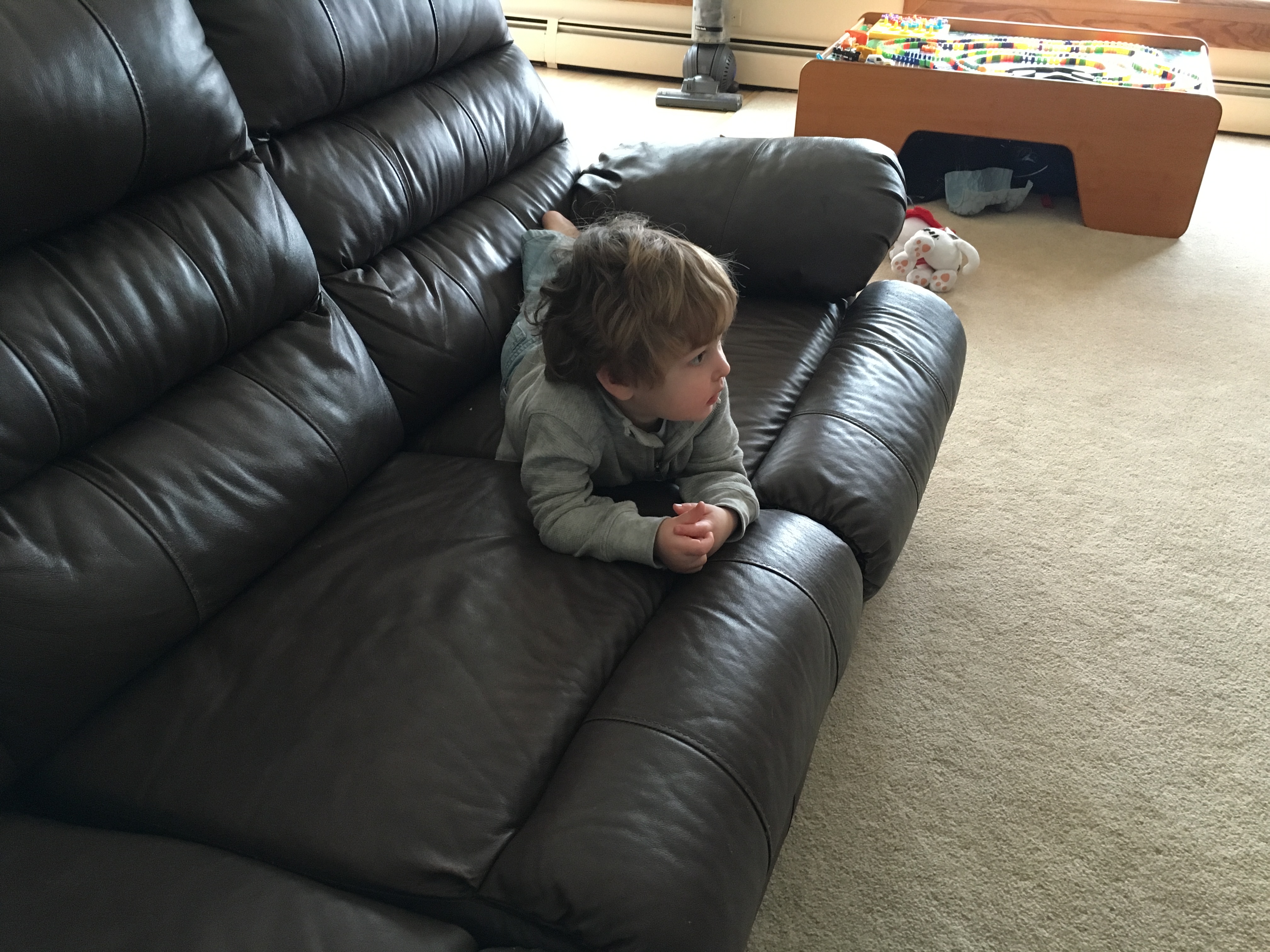 I guess at age 2 this is comfortable... |