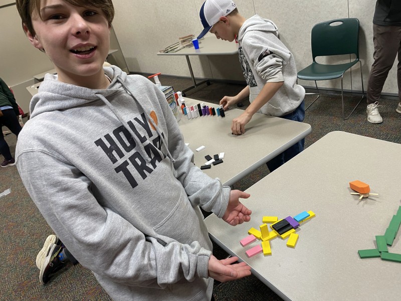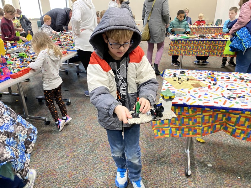 Ephraim Playing with Legos and Dominos at the Library: |