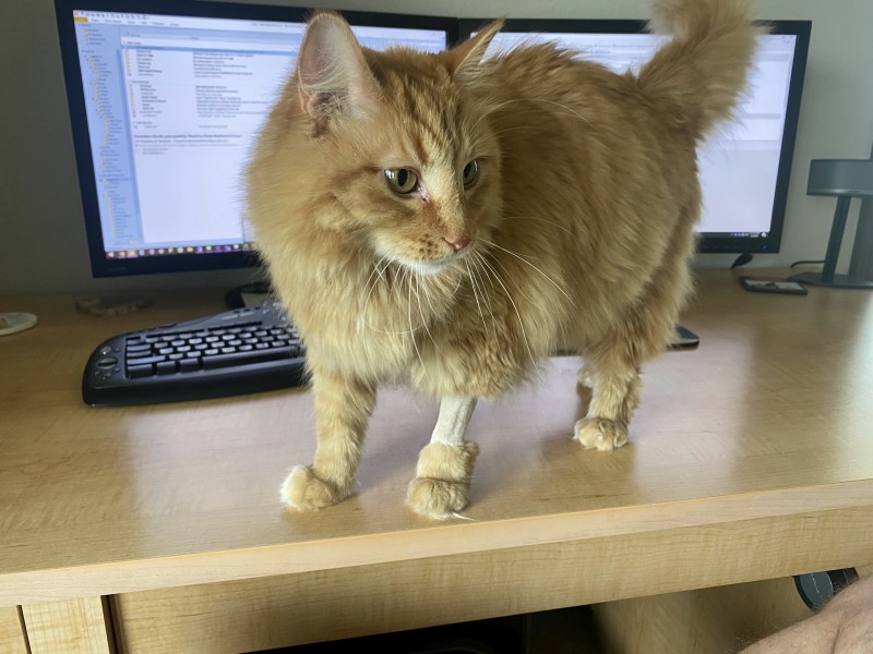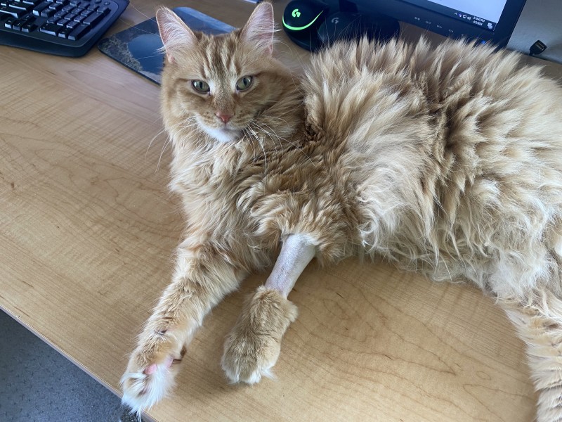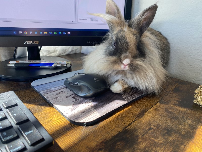 Churro Eating on Computer Desk: |