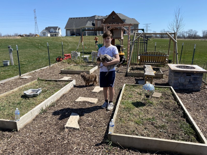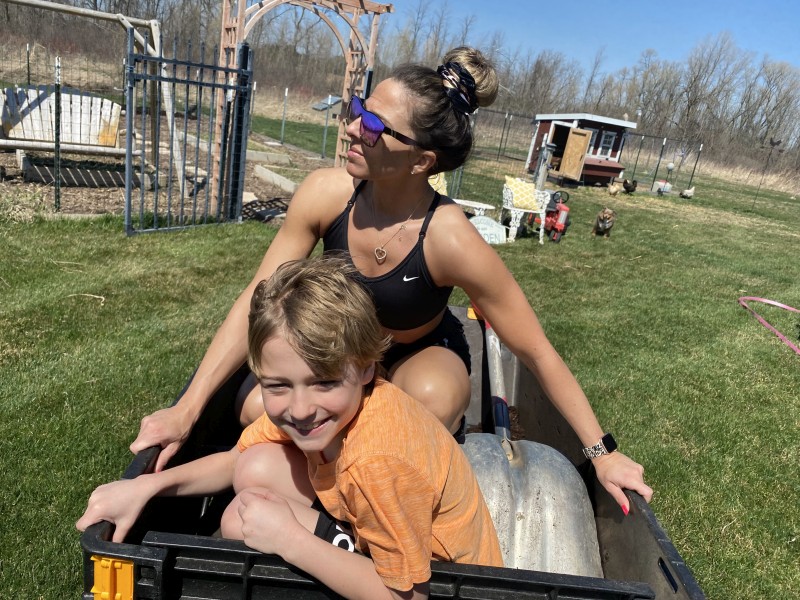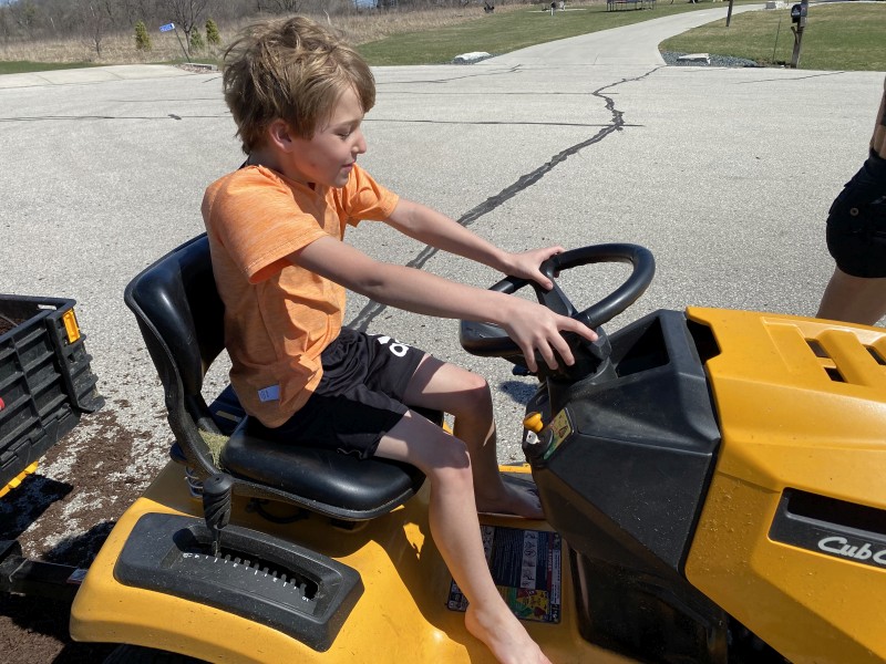Ephraim Shoveling Mulch: |