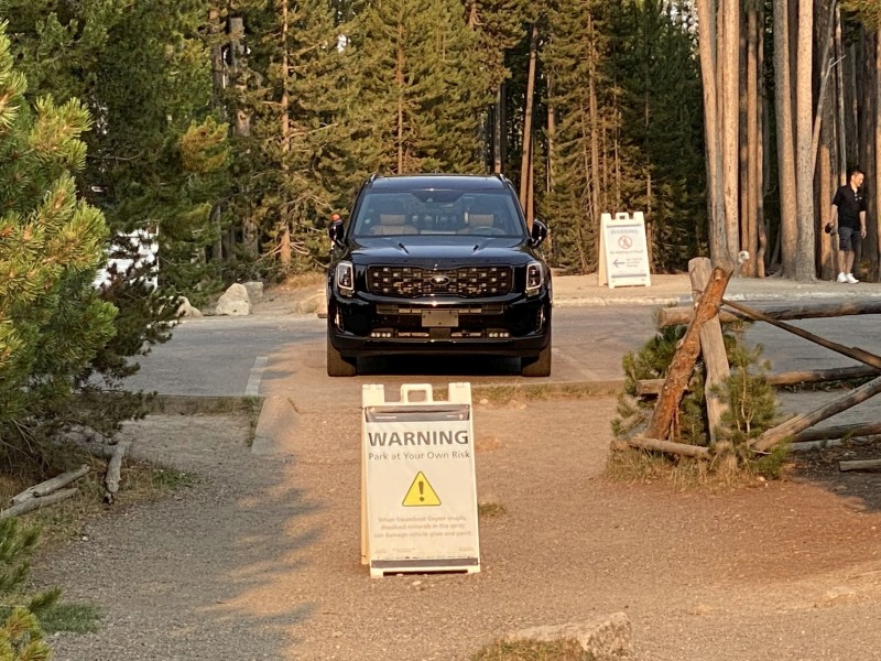 Above: Where on Earth? | When Steamboat Geyser erupts, dissolved minerals in the spray can damage vehicle glass and paint. |
