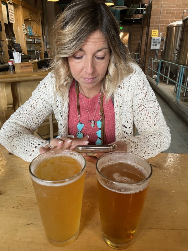 Above: Where on Earth? | Rosanne laughing at dinner (at Portneuf Valley Brewing): |